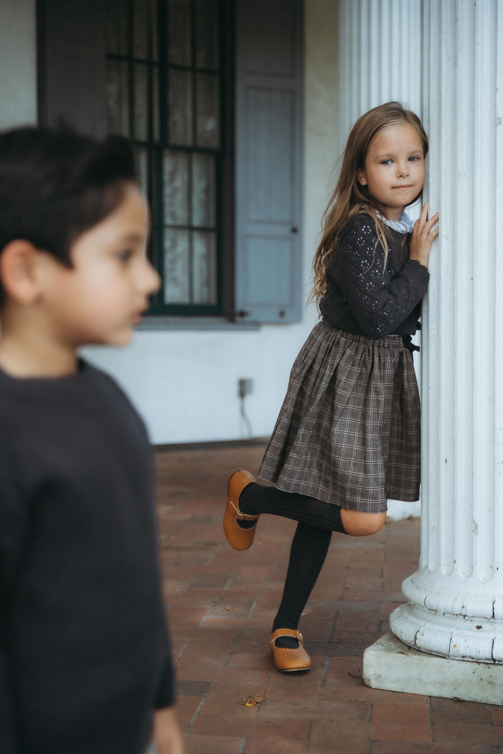 KIN & KIN BROWN PLAID GATHERED SKIRT
