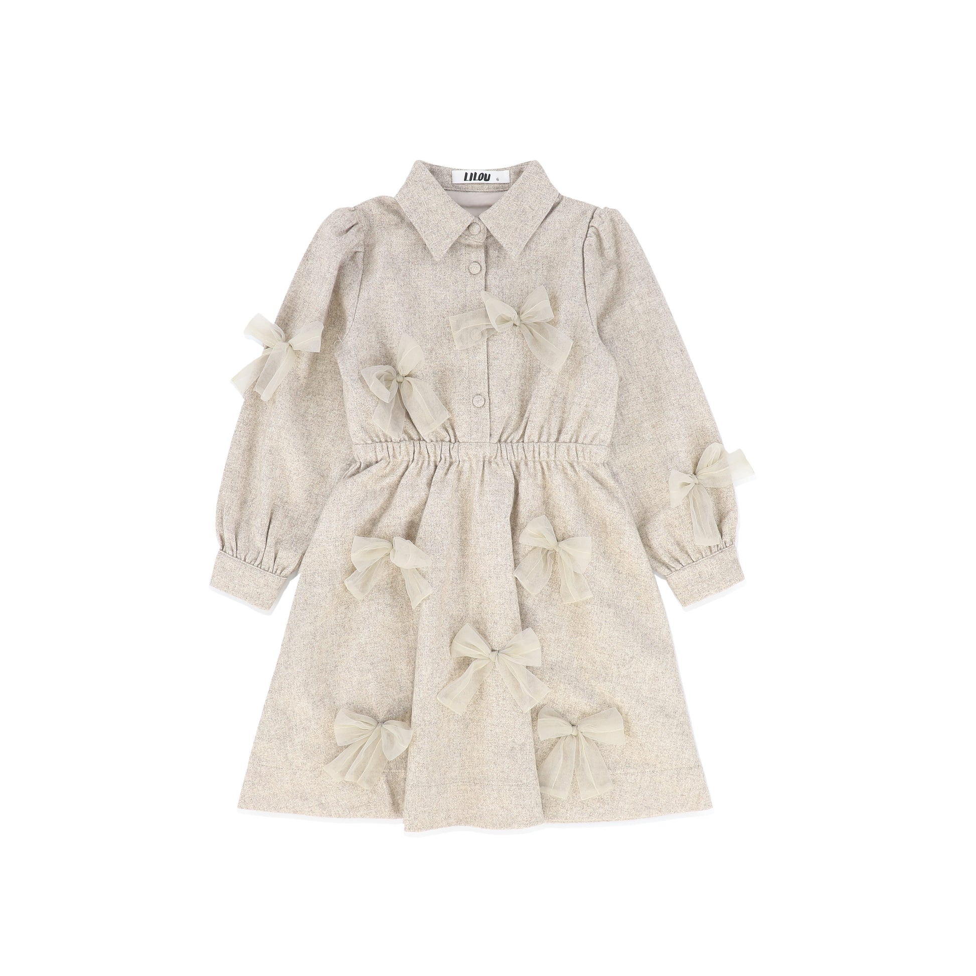 LILOU OATMEAL SCATTERED BOW APPLIQUE DRESS