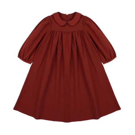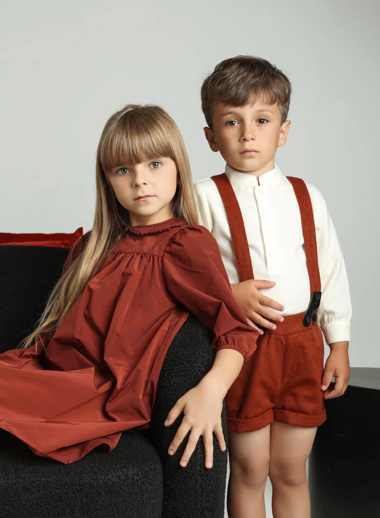 LITTLE TEMPEST RUST TAFFETA BUTTON DRESS
