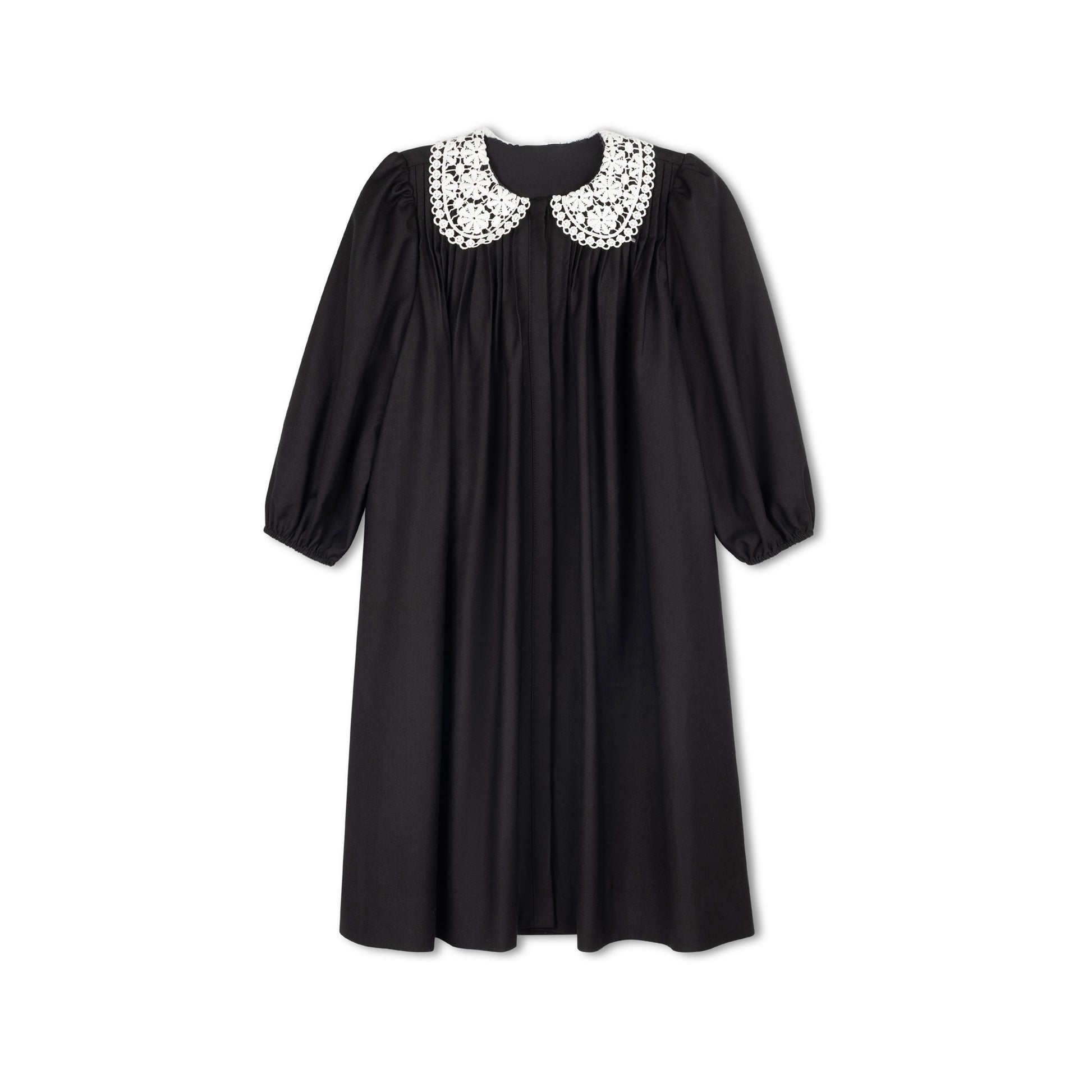 MADAME TI BLACK EMBROIDERED PETER PAN COLLAR DRESS