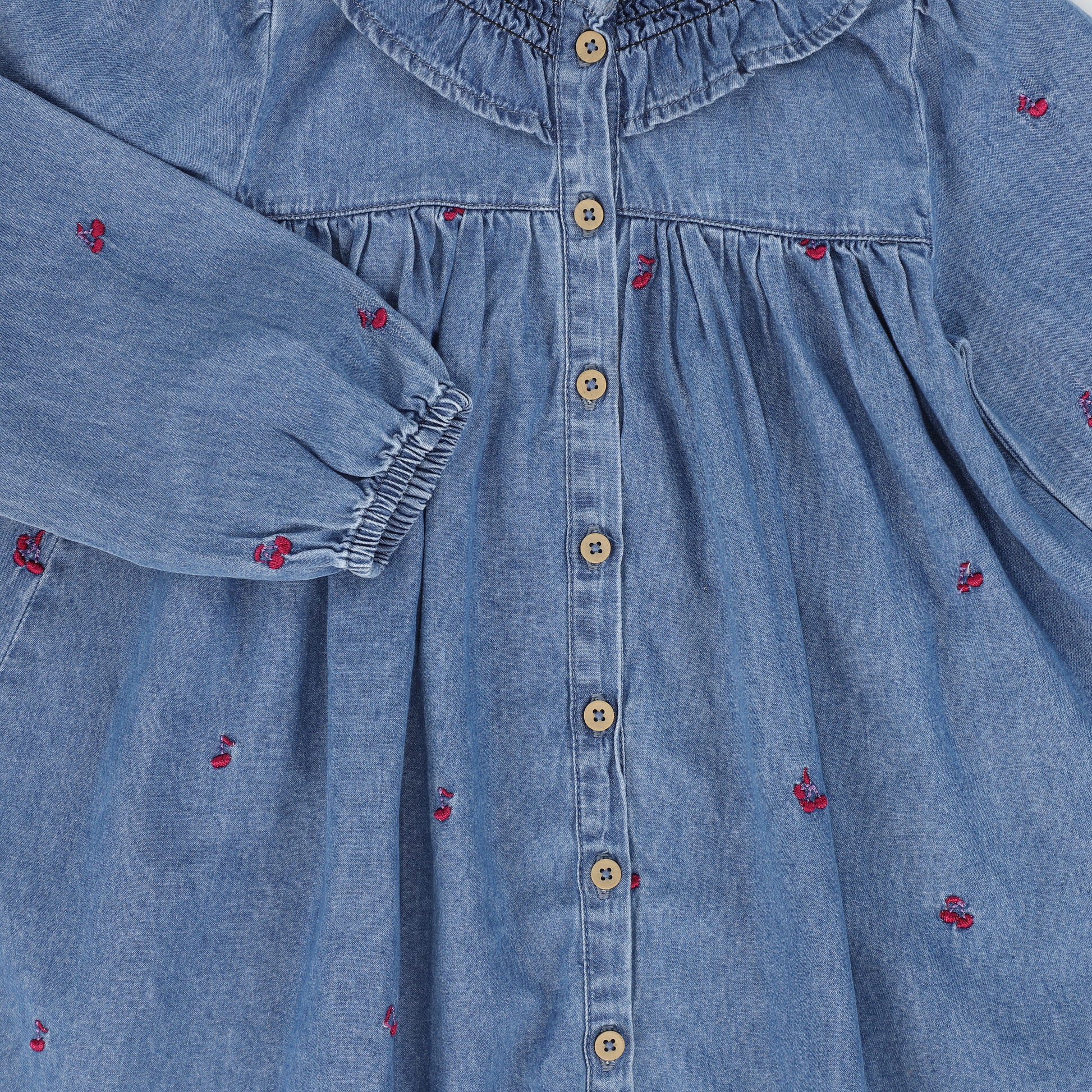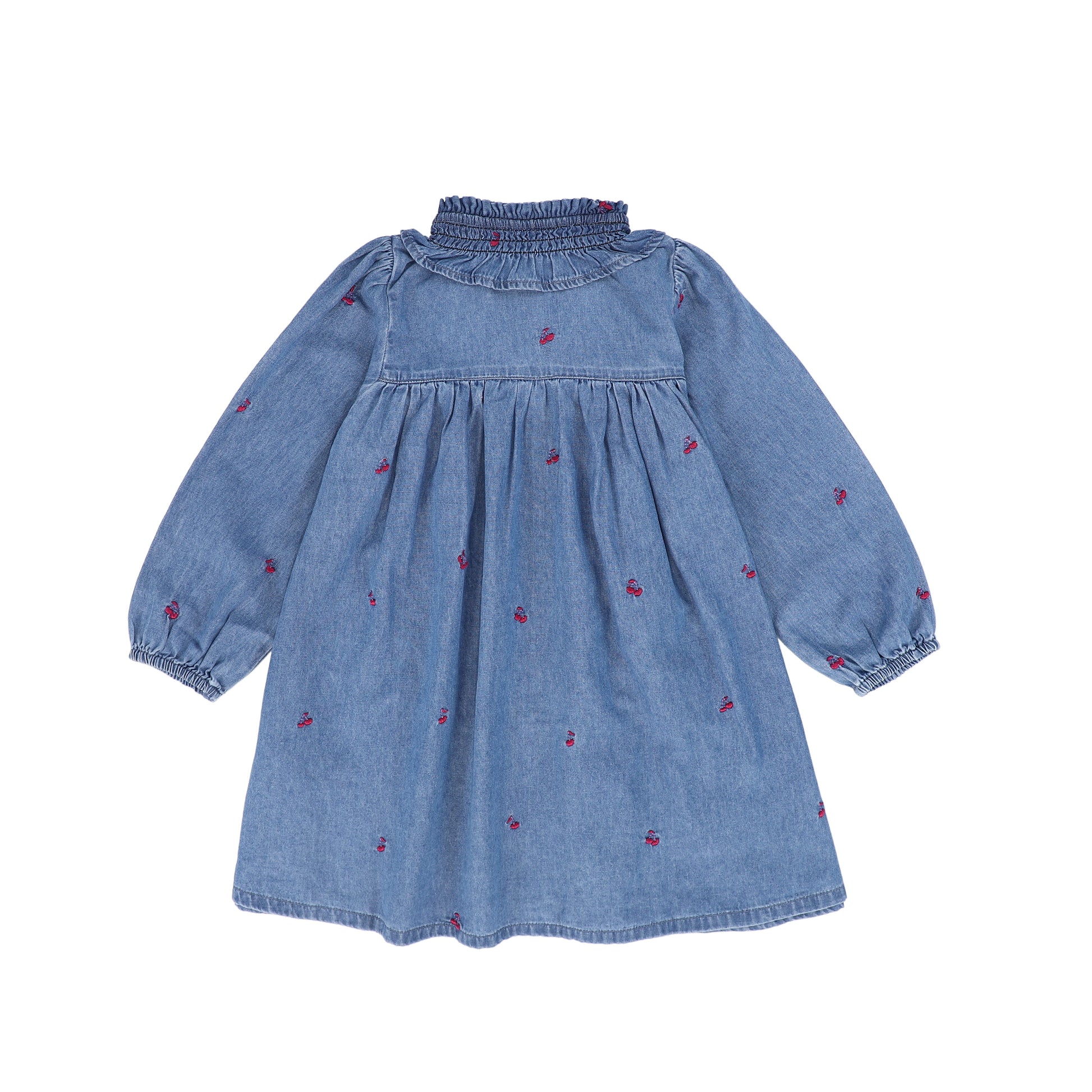 MINYMO BLUE DENIM FLORAL RUFFLE COLLAR DRESS