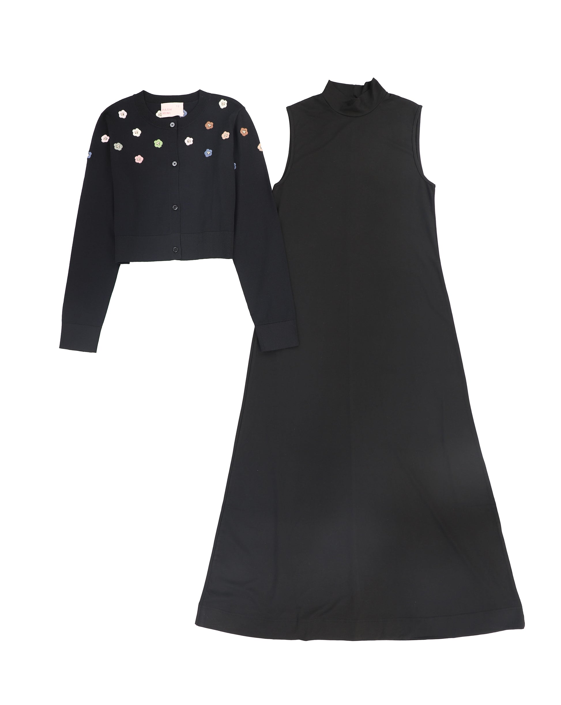 PASHMINI BLACK EMBROIDERED CARDIGAN MAXI DRESS