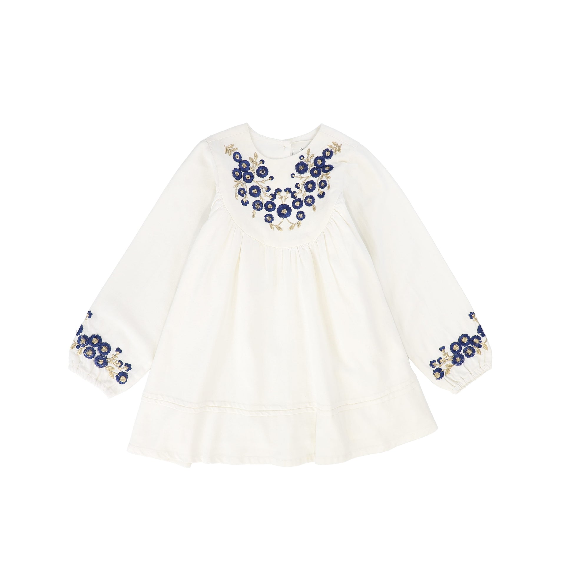 PERNILLE IVORY TWILL EMBROIDERED FLORAL DRESS
