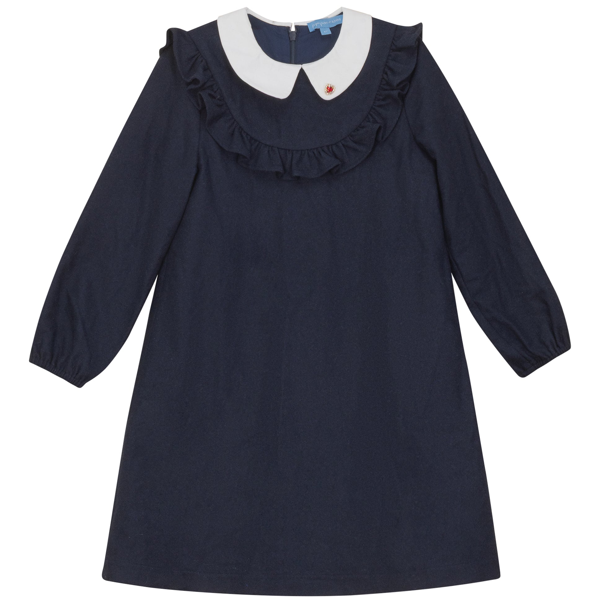 POMPOMME NAVY WOOL FRILL TRIM COLLAR DRESS