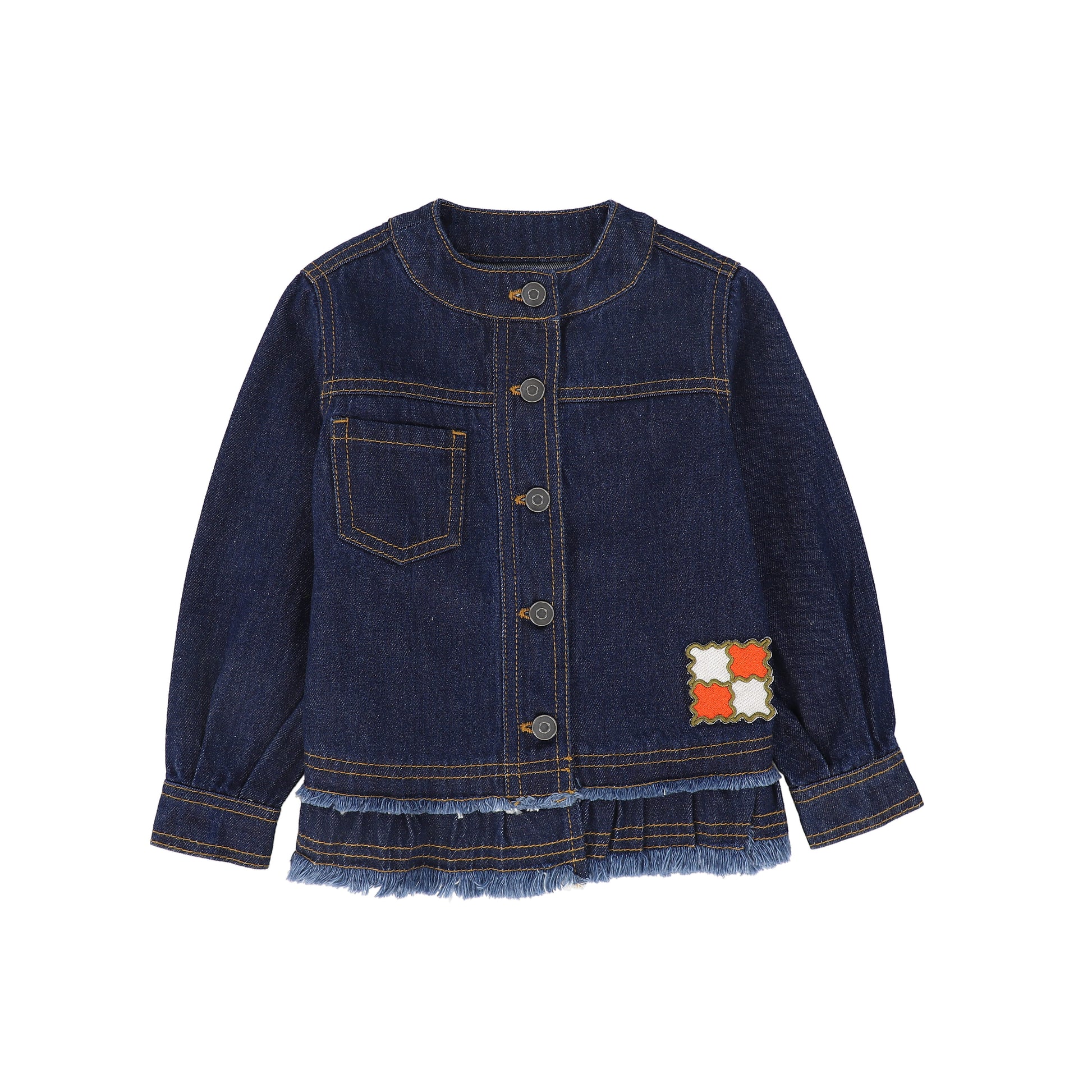 ROOIE AND FRIENDS BLUE DENIM FRINGE PATCH POCKET JACKET