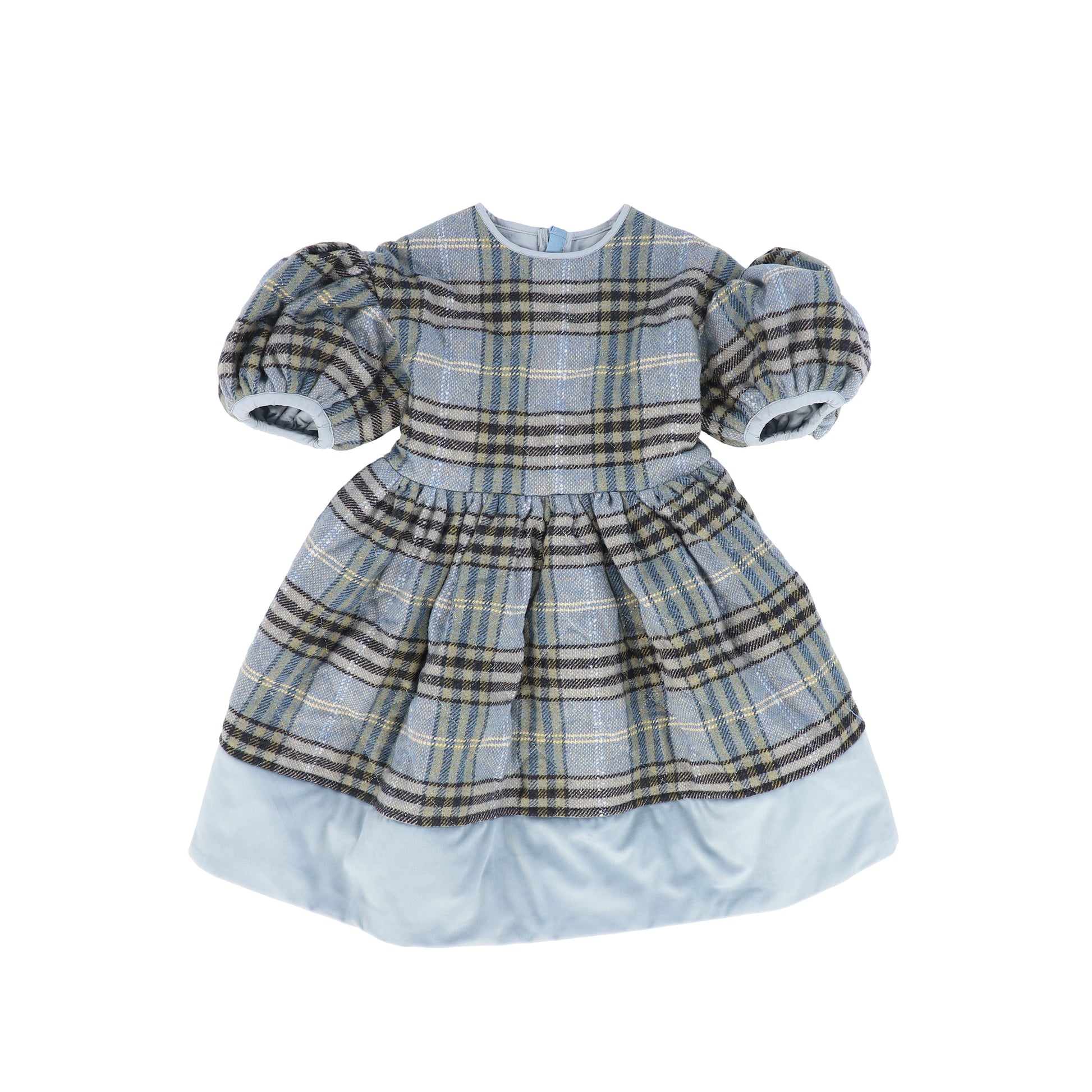THE MIDDLE DAUGHTER LIGHT BLUE CHECKED PUFF SLEEVE DRESS