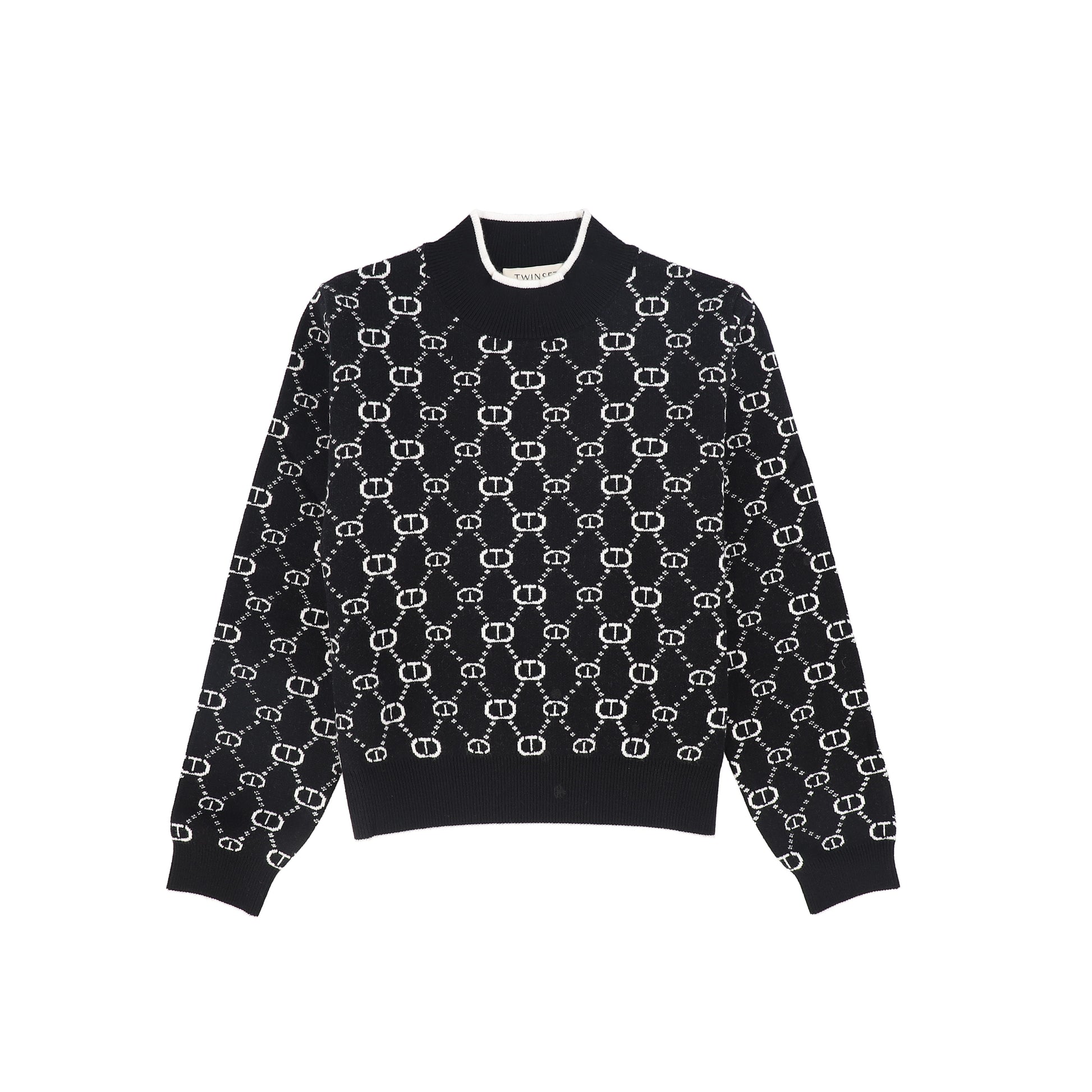 TWINSET BLACK/WHITE LOGO PRINT SWEATER