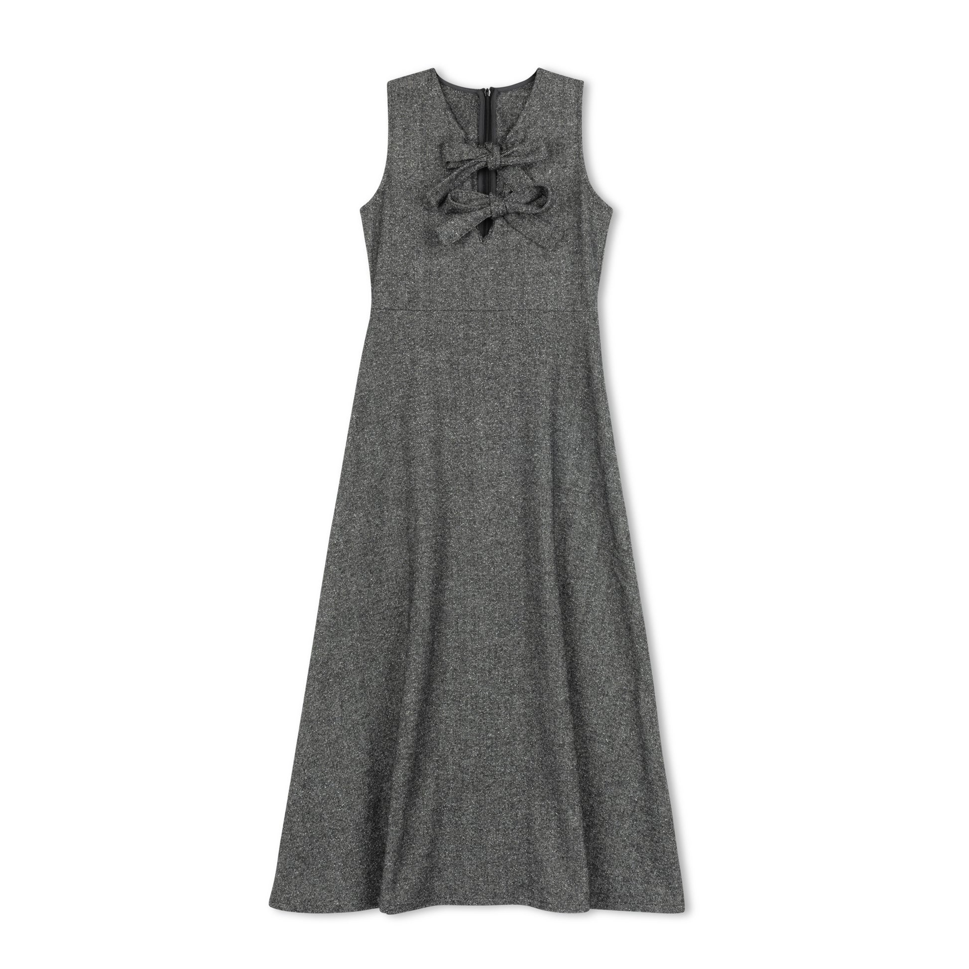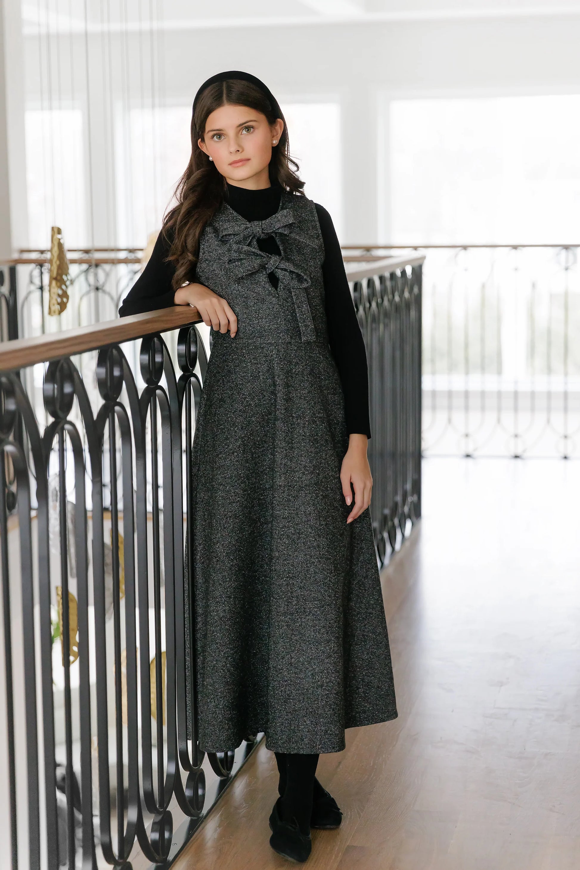 VELVETTE LABEL GREY/BLACK TEXTURED BOW MIDI JUMPER