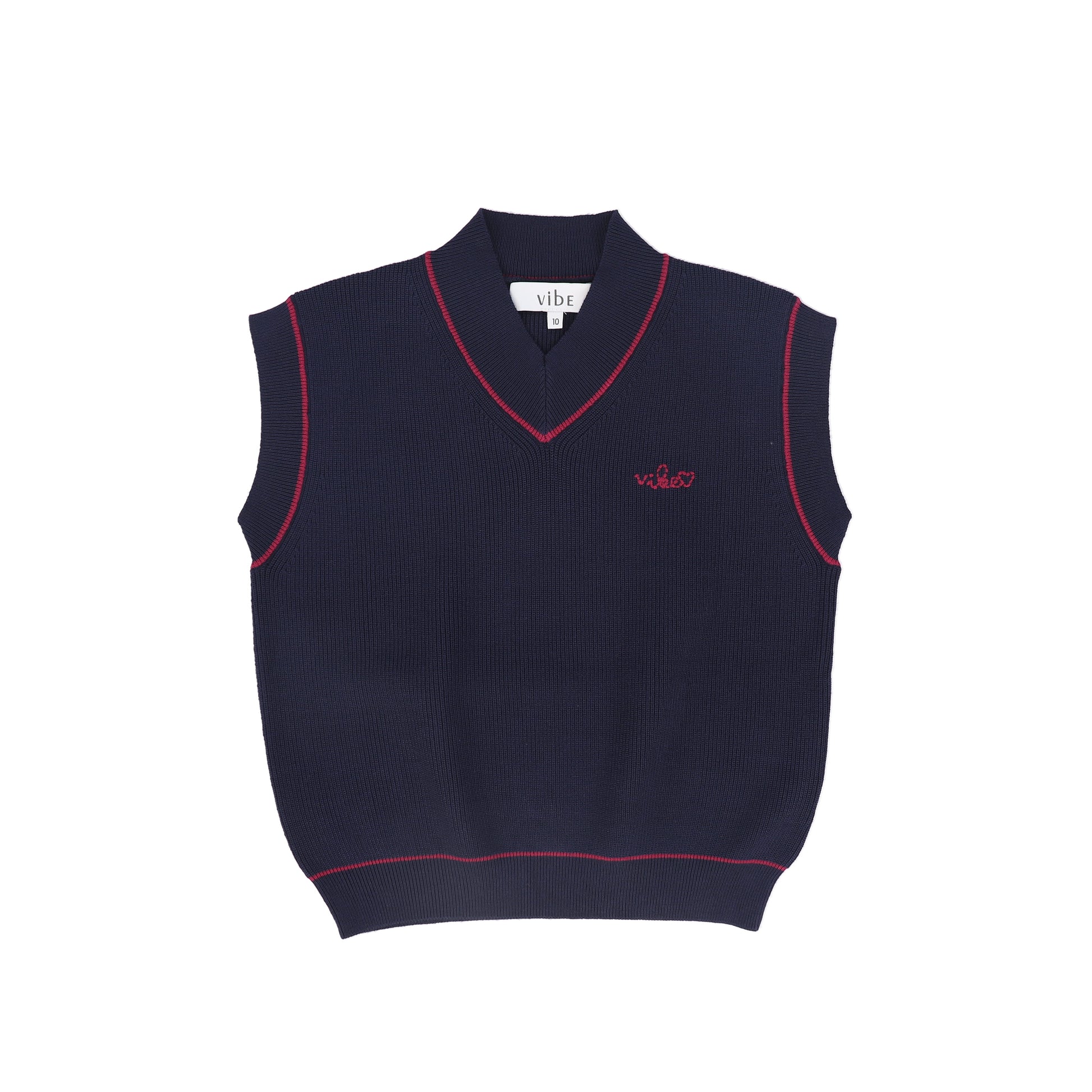 VIBE NAVY HEATHERED KNIT TRIM VEST