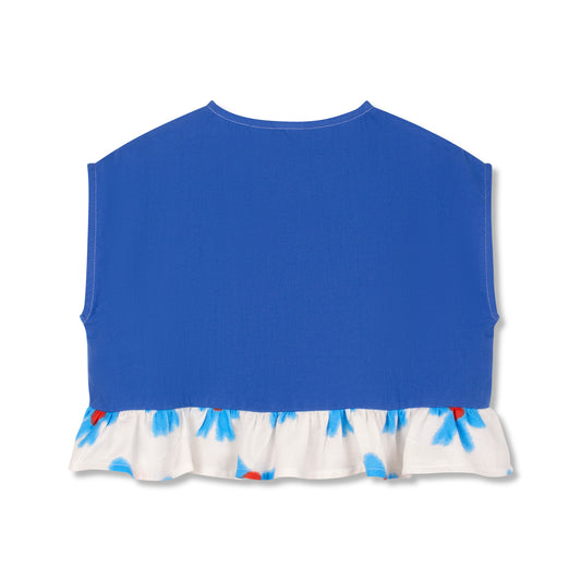 WYNKEN WHITE/BLUE BOW RUFFLE TOP