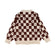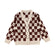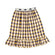 HEBE BROWN CHECKERED TEXT PRINT RED RUFFLE TRIM DRESS