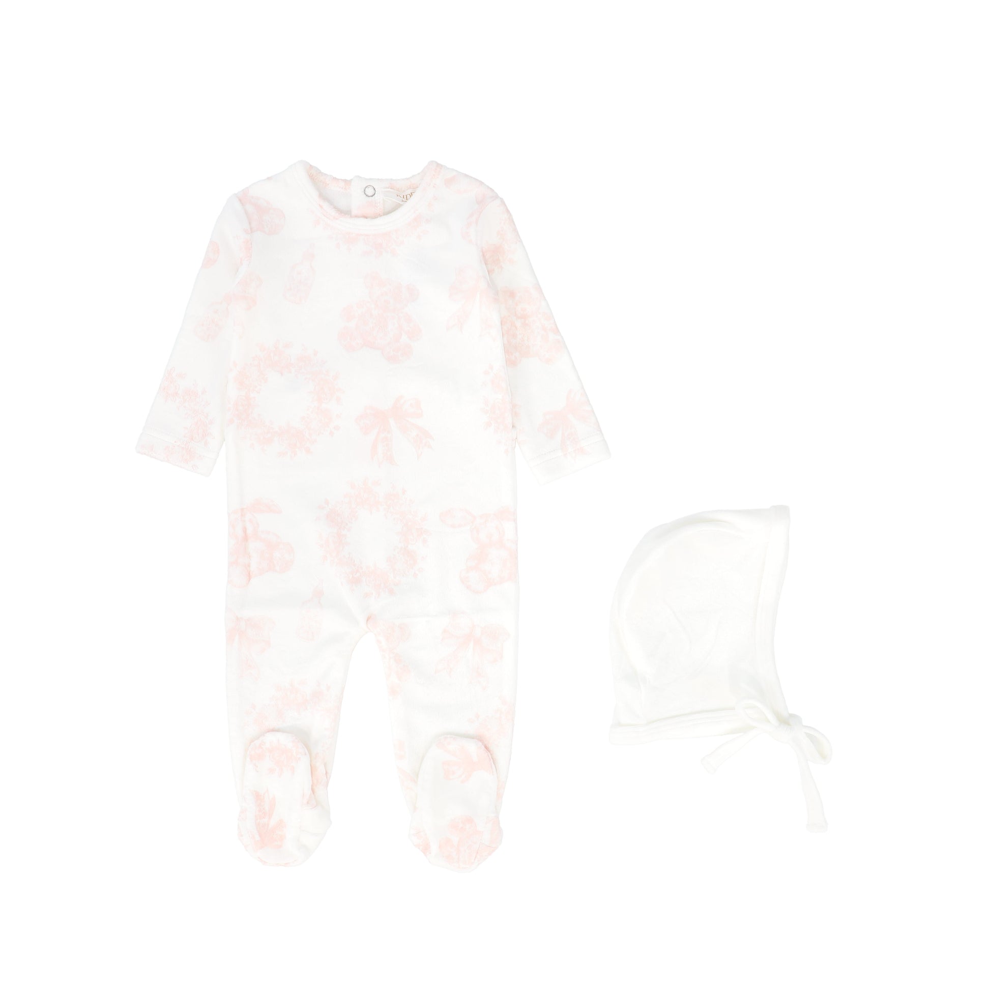 KIPP PINK TOILE PRINT FOOTIE + BONNET