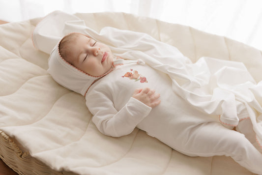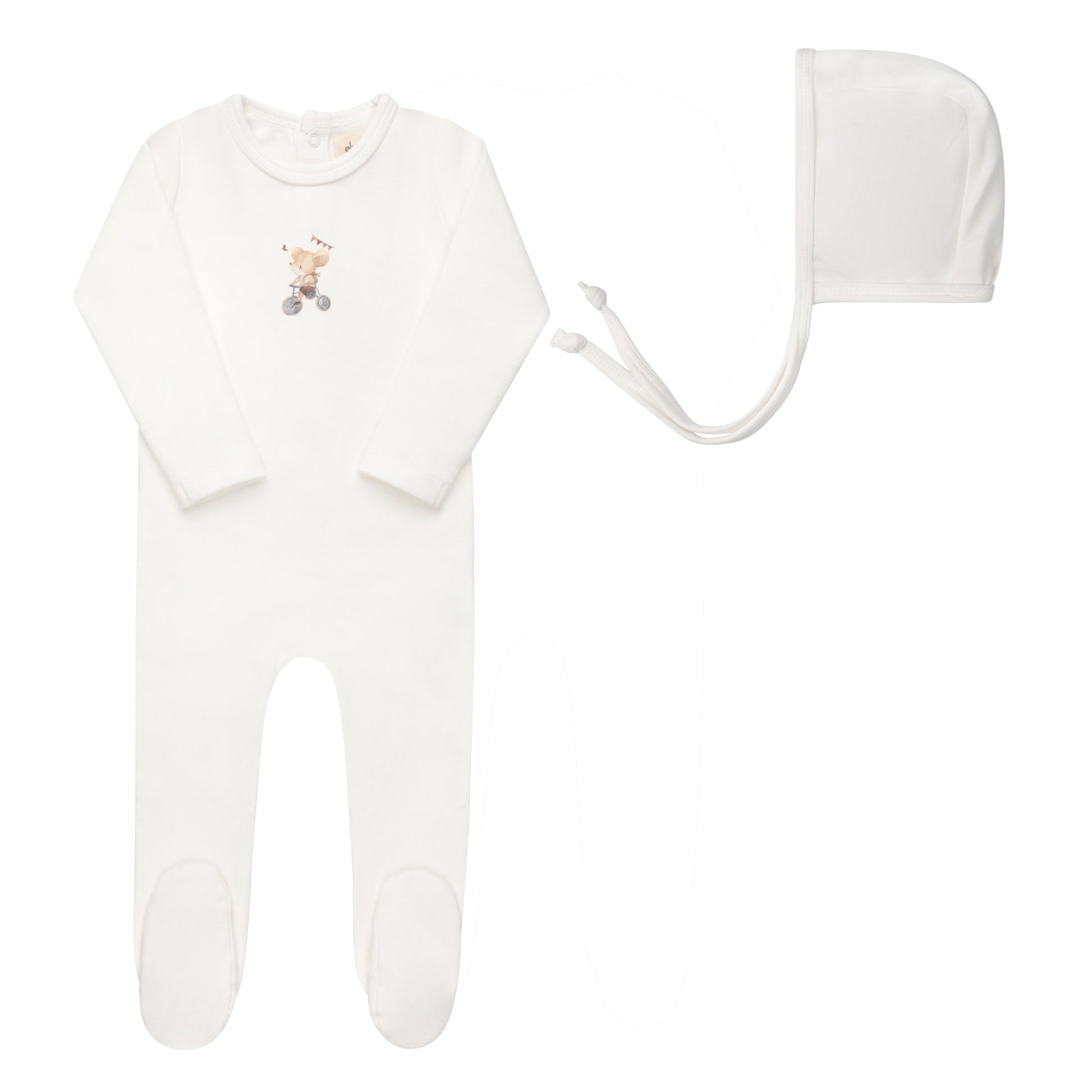 ELYS & CO IVORY/BLUE FRENCH TERRY FOOTIE + BONNET