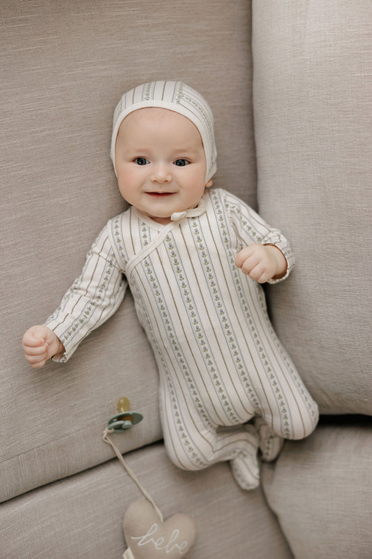 ELYS & CO IVORY/PINK LINEAR TULIP FOOTIE + BONNET