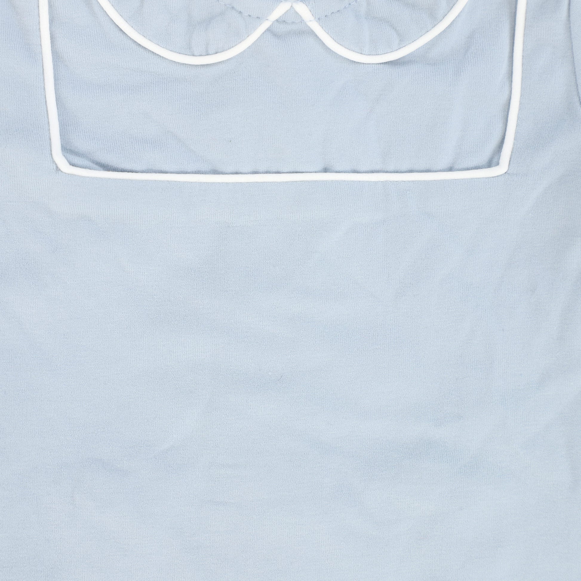 BEBE JOLEE BLUE PIPED BIB COLLAR FOOTIE