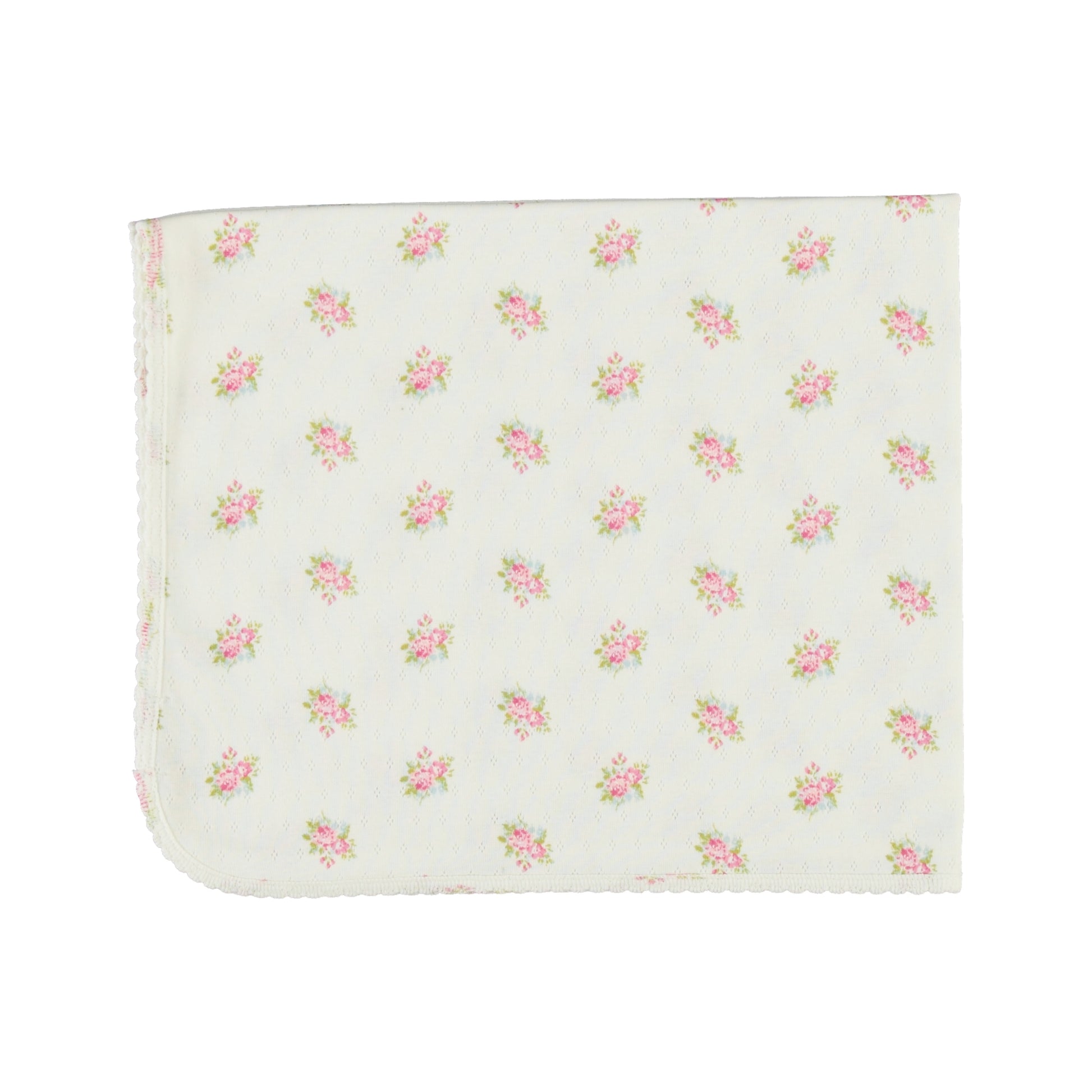 BEBE ORGANIC WHITE/PINK FLOWER BUNCH BLANKET