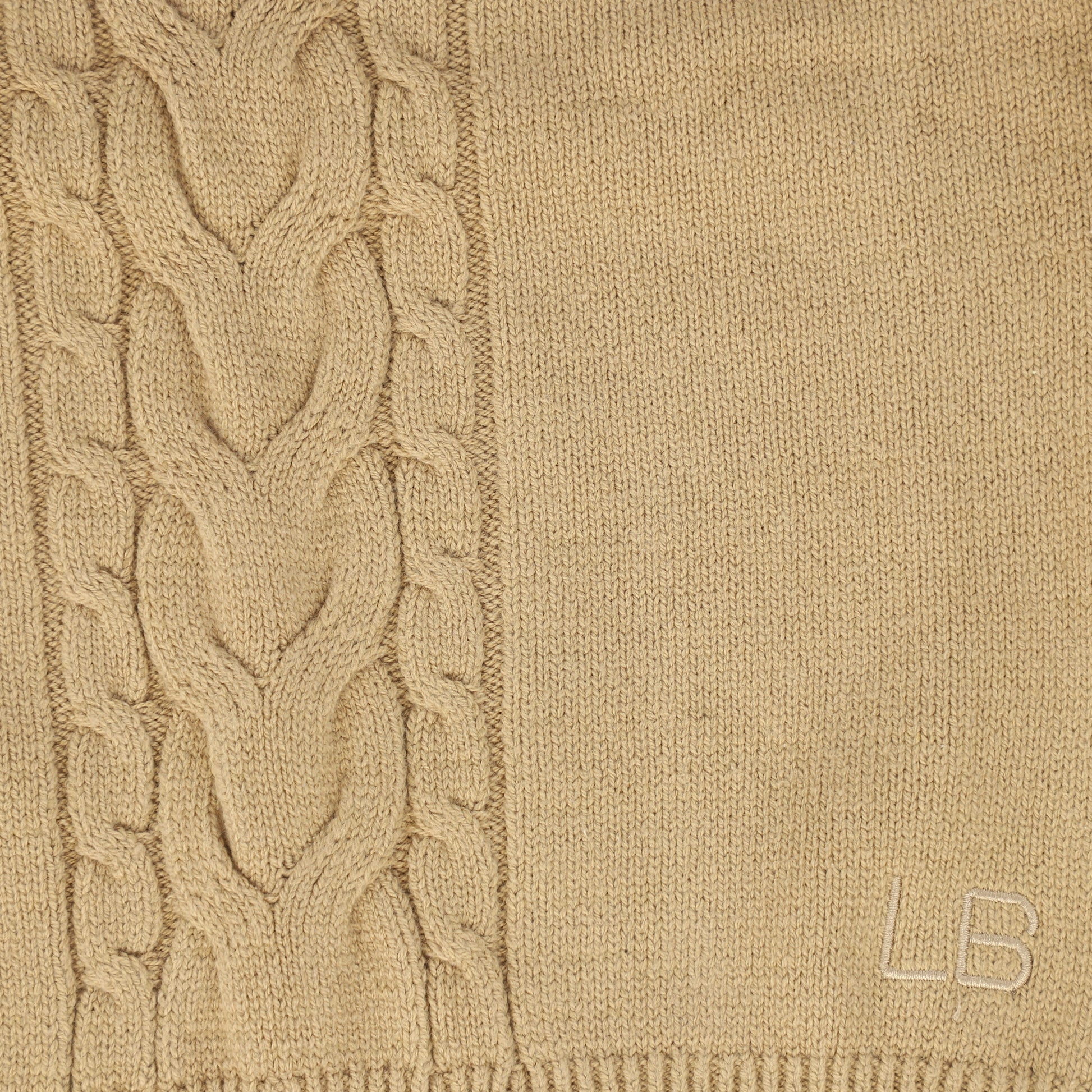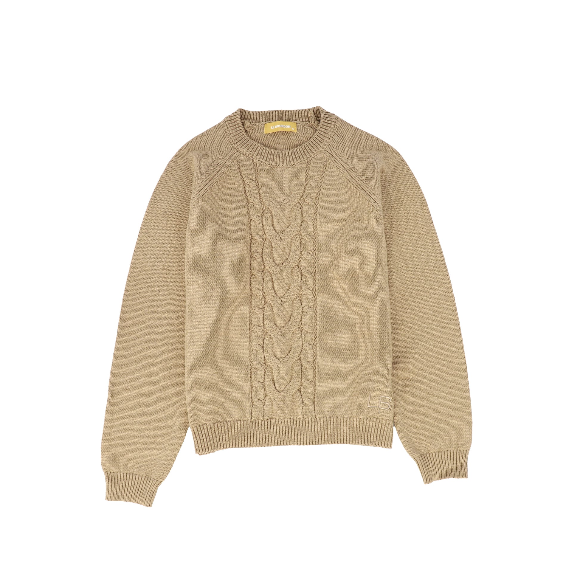 Le Bourdon Beige Braided Knit Crew Sweater