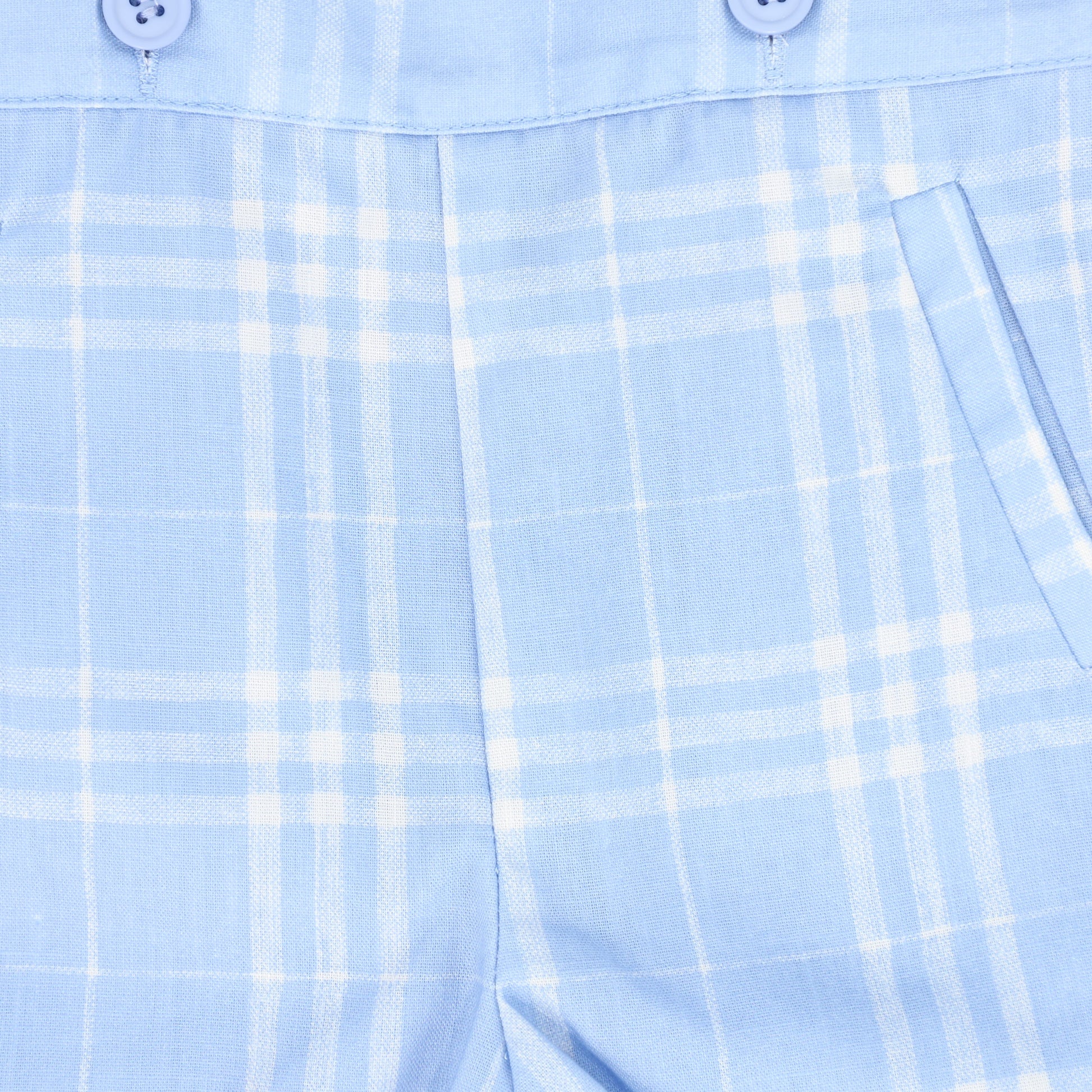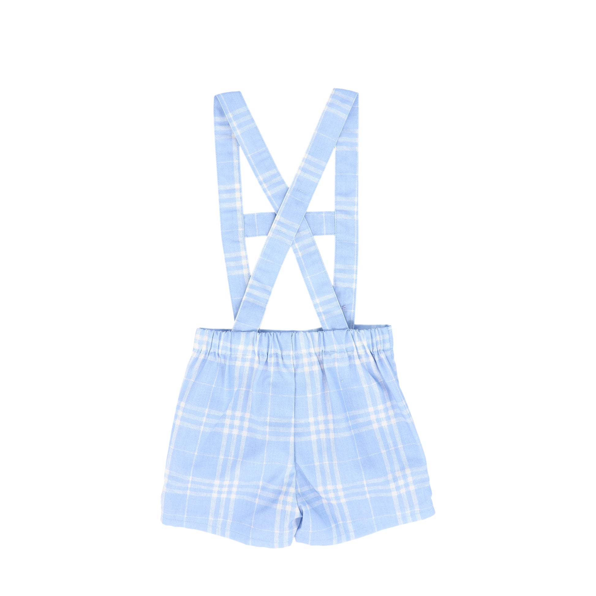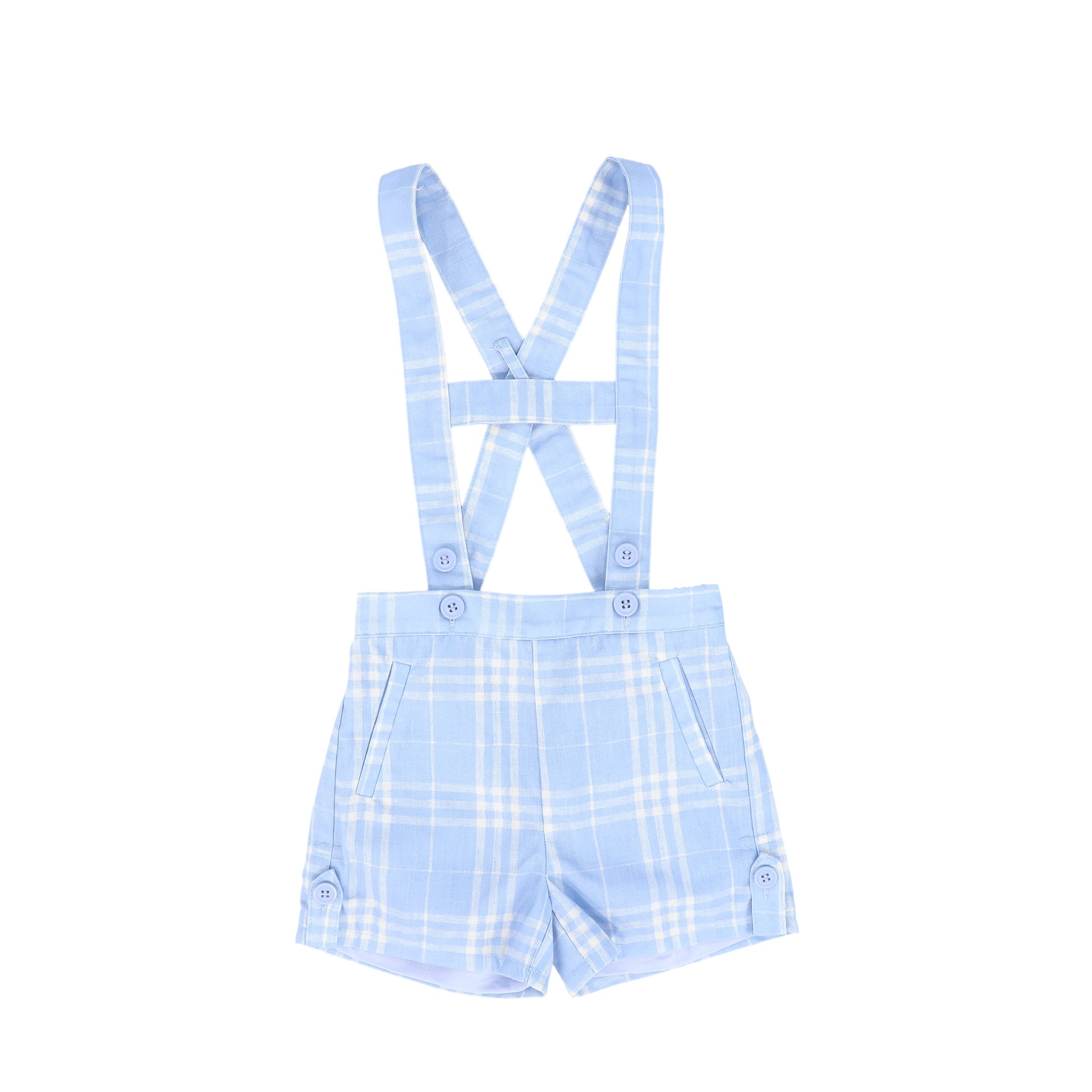 LE BOURDON LIGHT BLUE PLAID LINEN SUSPENDER SHORTS