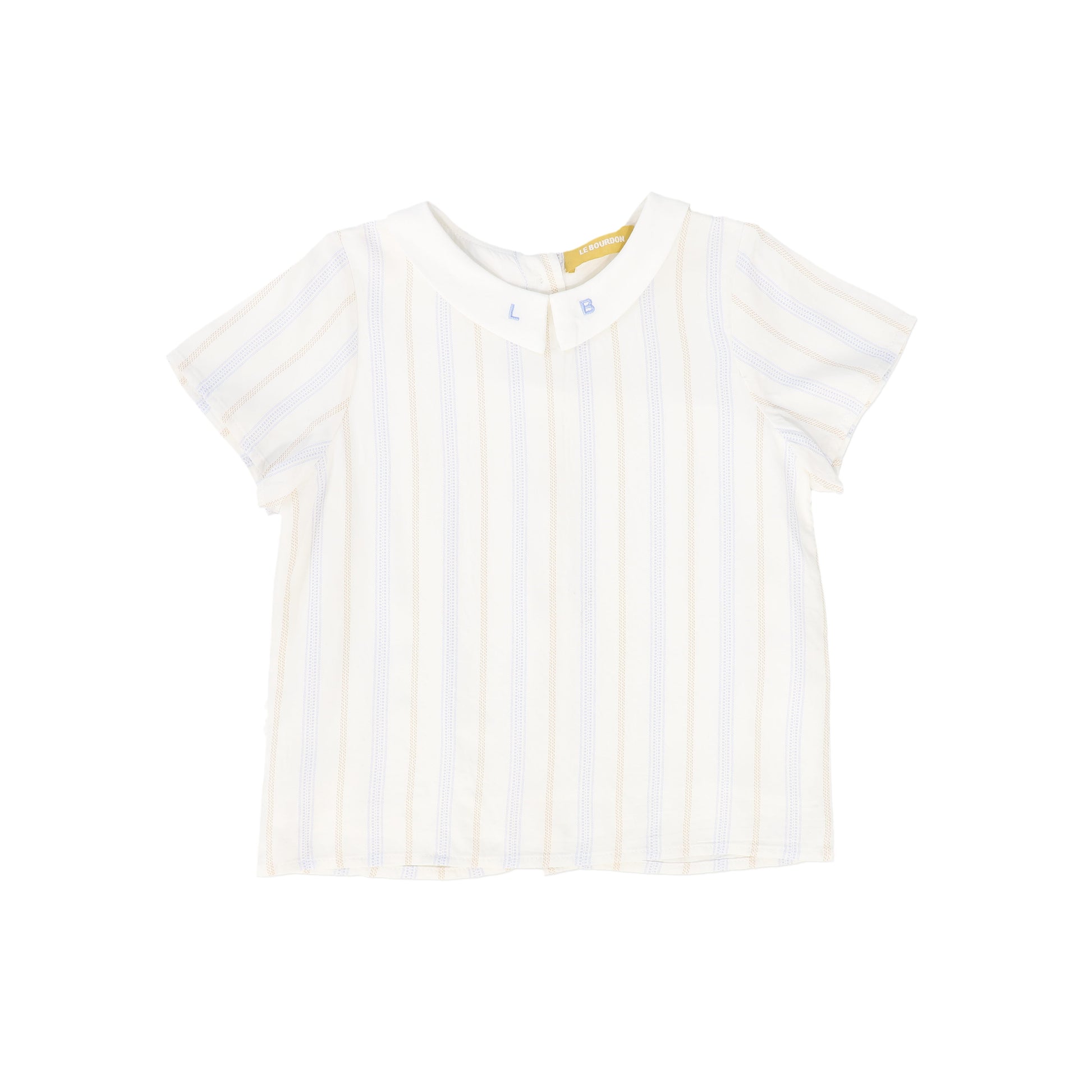 LE BOURDON IVORY/BLUE STRIPE DOUBLE BREASTED BLOUSE [FINAL SALE]