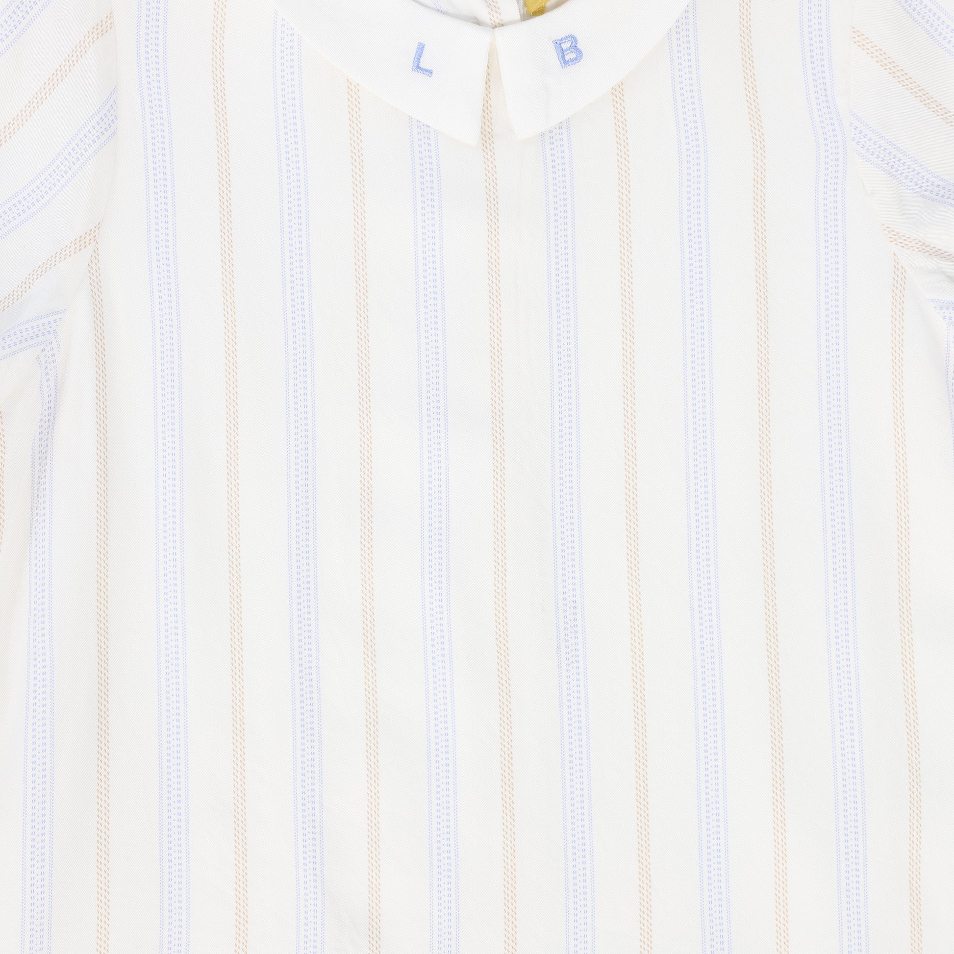 LE BOURDON IVORY/BLUE STRIPE SMOCKED OVERALLS [FINAL SALE]