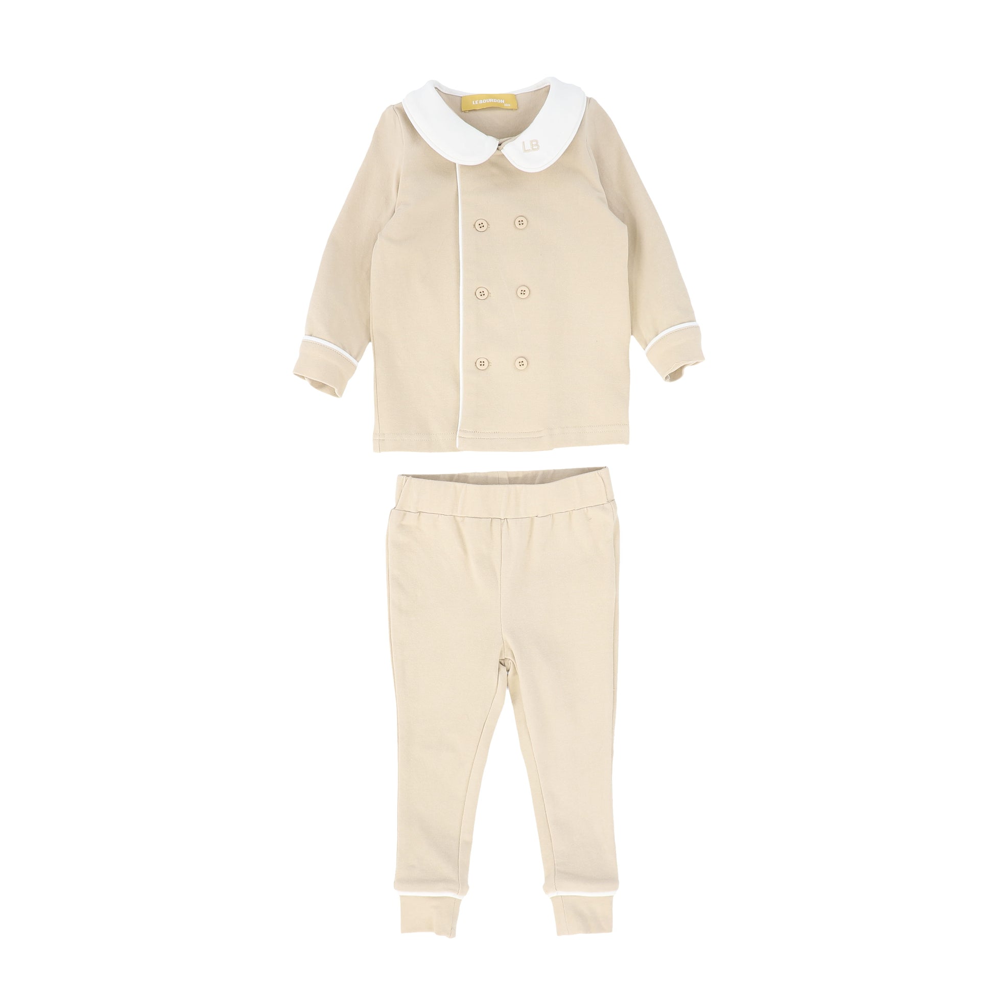 LE BOURDON TAN PIPED BUTTON PAJAMA