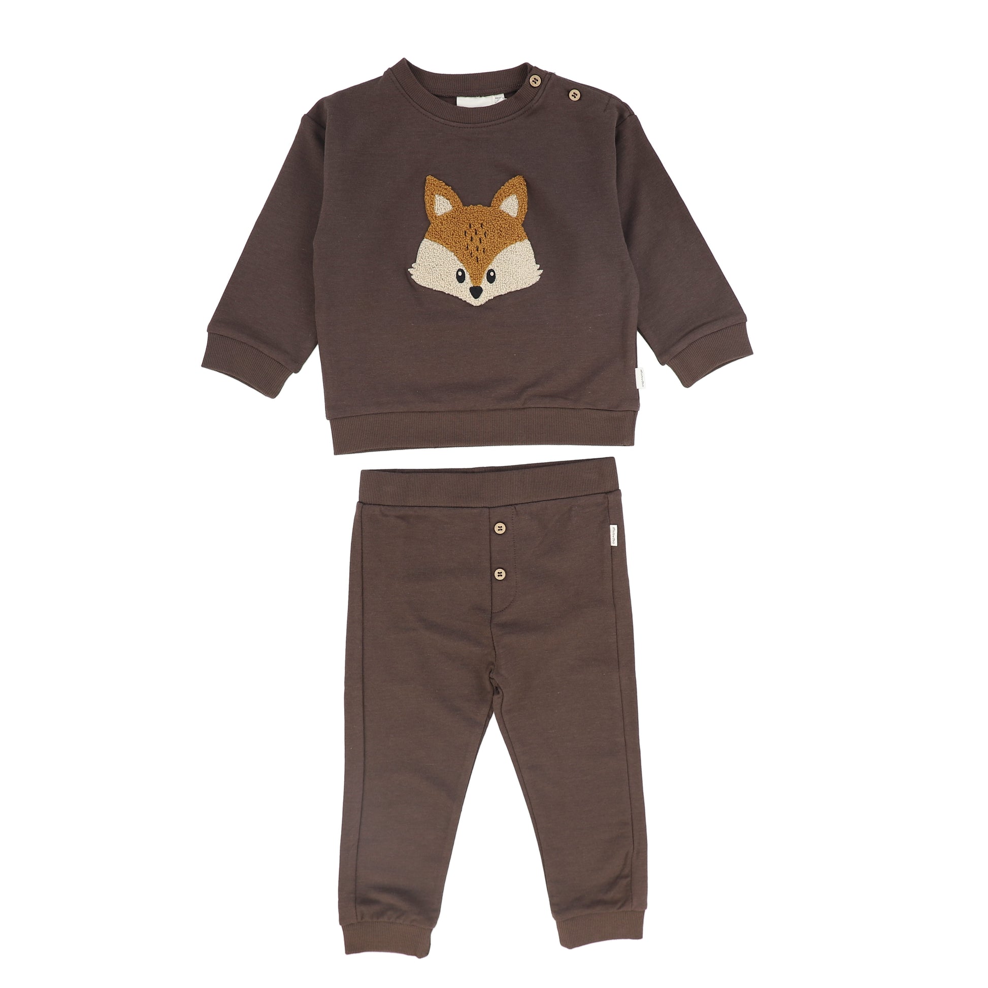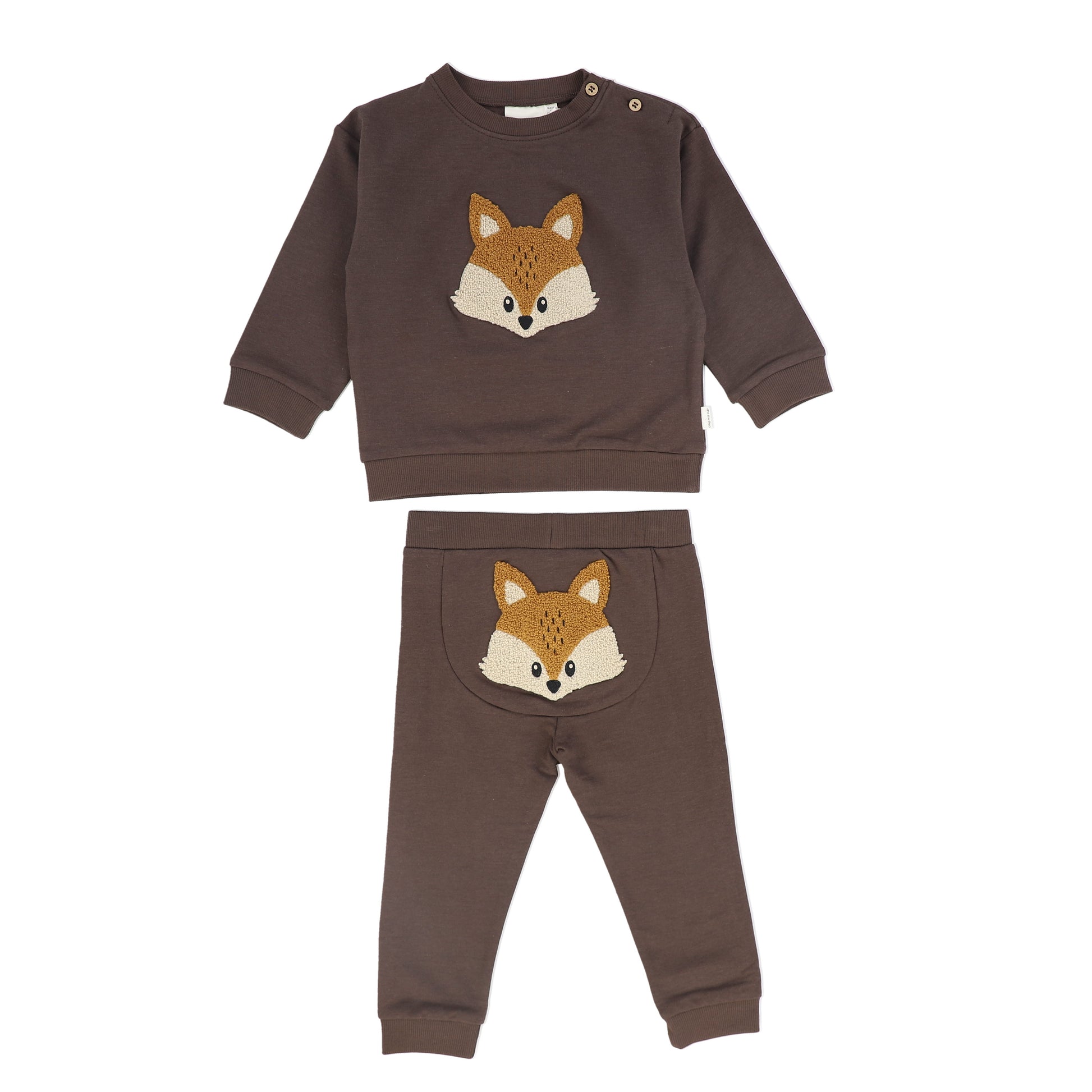 MINYMO BROWN ANIMAL PATCH SWEATSHIRT SET