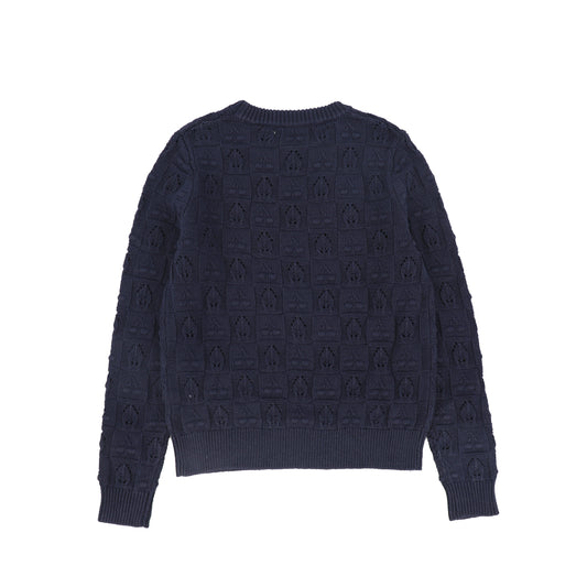 BACE COLLECTION NAVY CHECKED BUBBLE KNIT SWEATER [FINAL SALE]