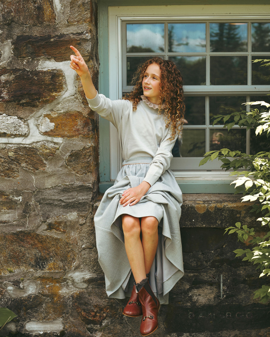 BAMBOO LIGHT GREY WOOL PIPED SKIRT