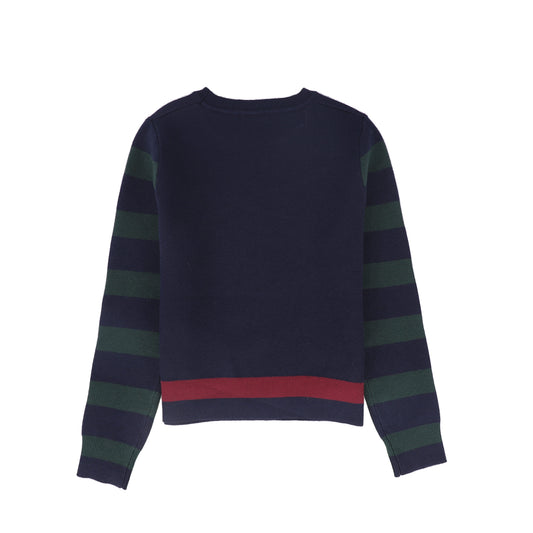 BAMBOO NAVY/RED STRIPE CENTER CREST SWEATER [FINAL SALE]