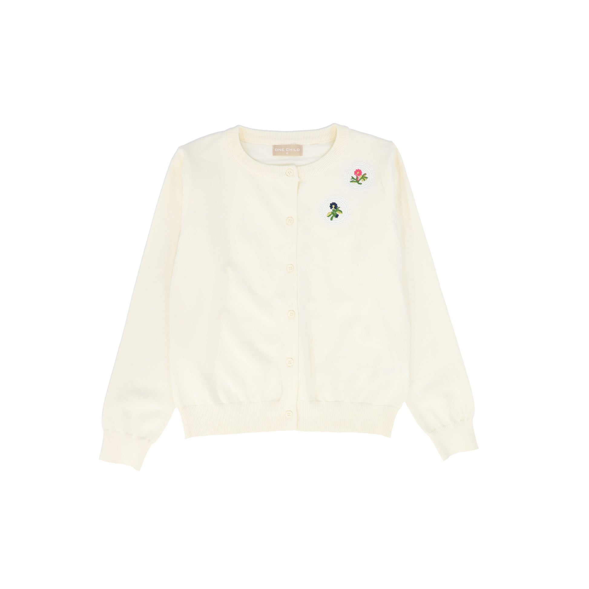 ONE CHILD CREAM EMBROIDERED FLORAL CARDIGAN