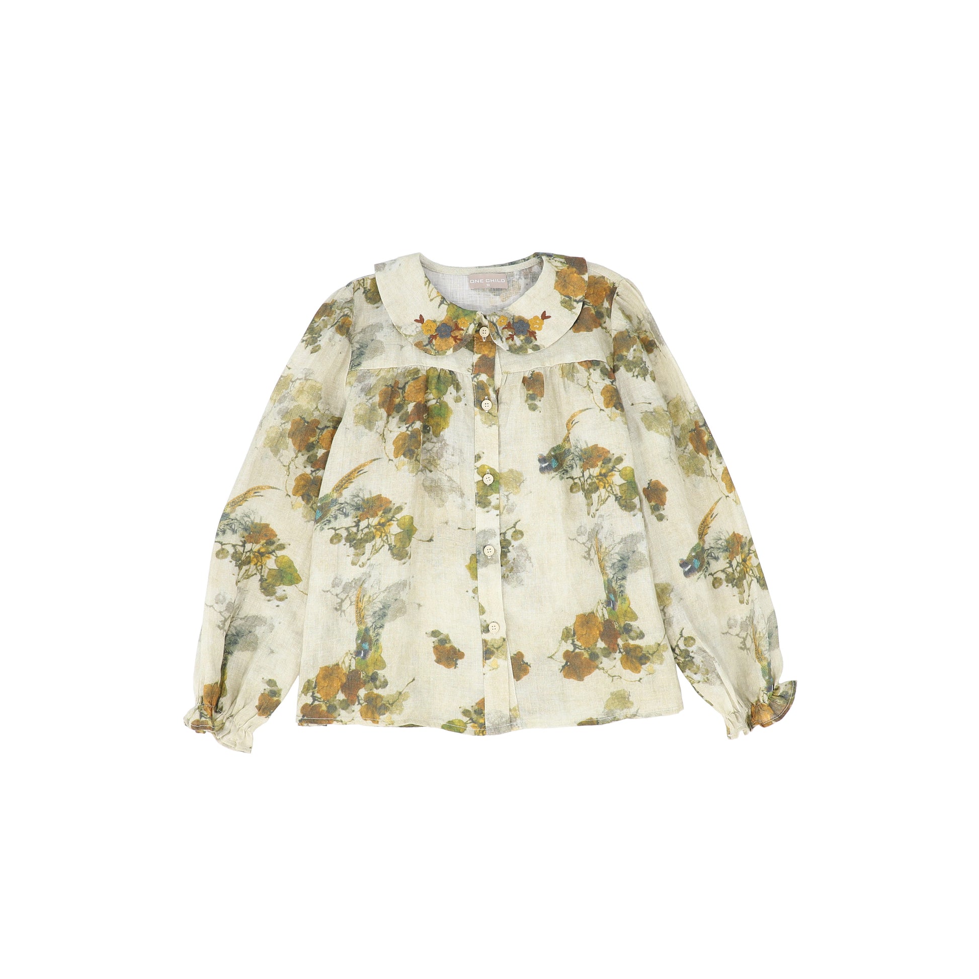 ONE CHILD BROWN/GREEN FLORAL COLLAR BLOUSE