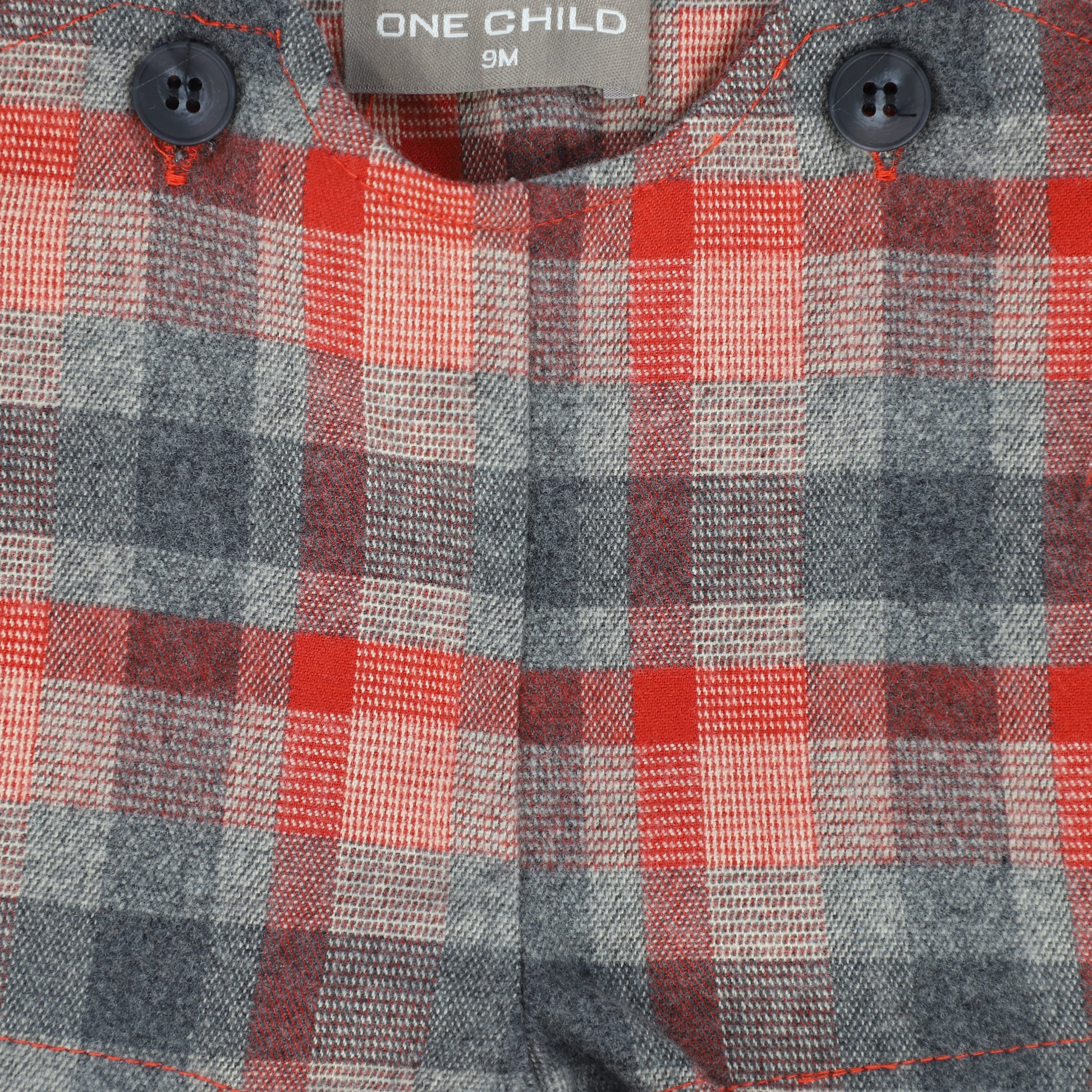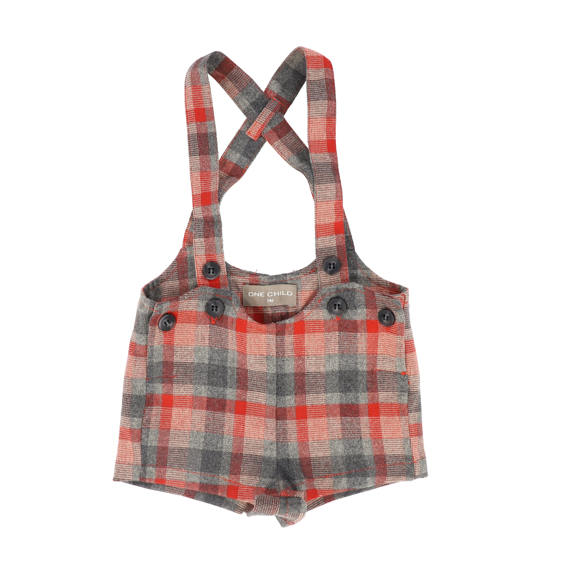 ONE CHILD GREY PLAID BUTTON SUSPENDER SHORTS