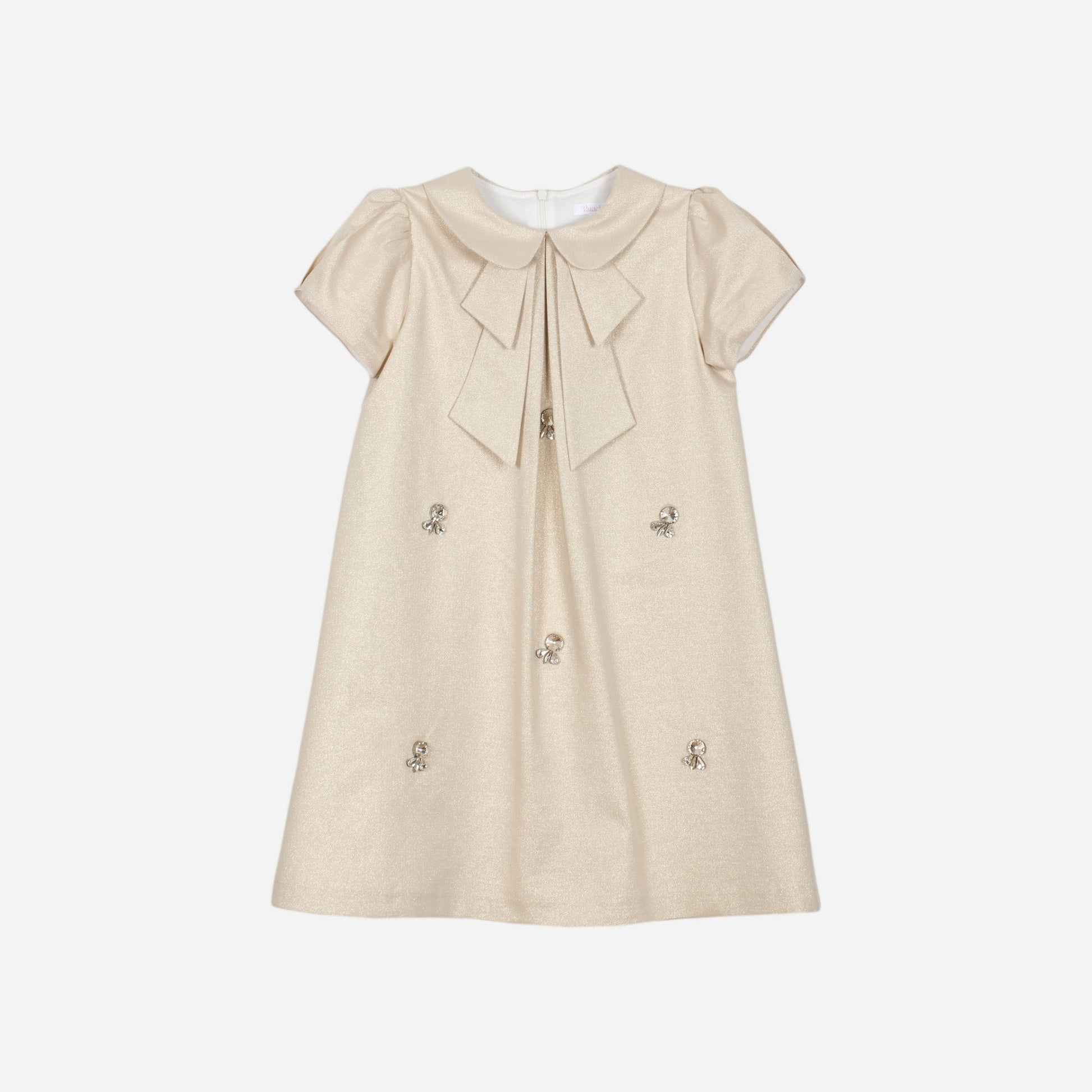 PATACHOU CREAM SHIMMER RHINESTONE COLLAR DRESS