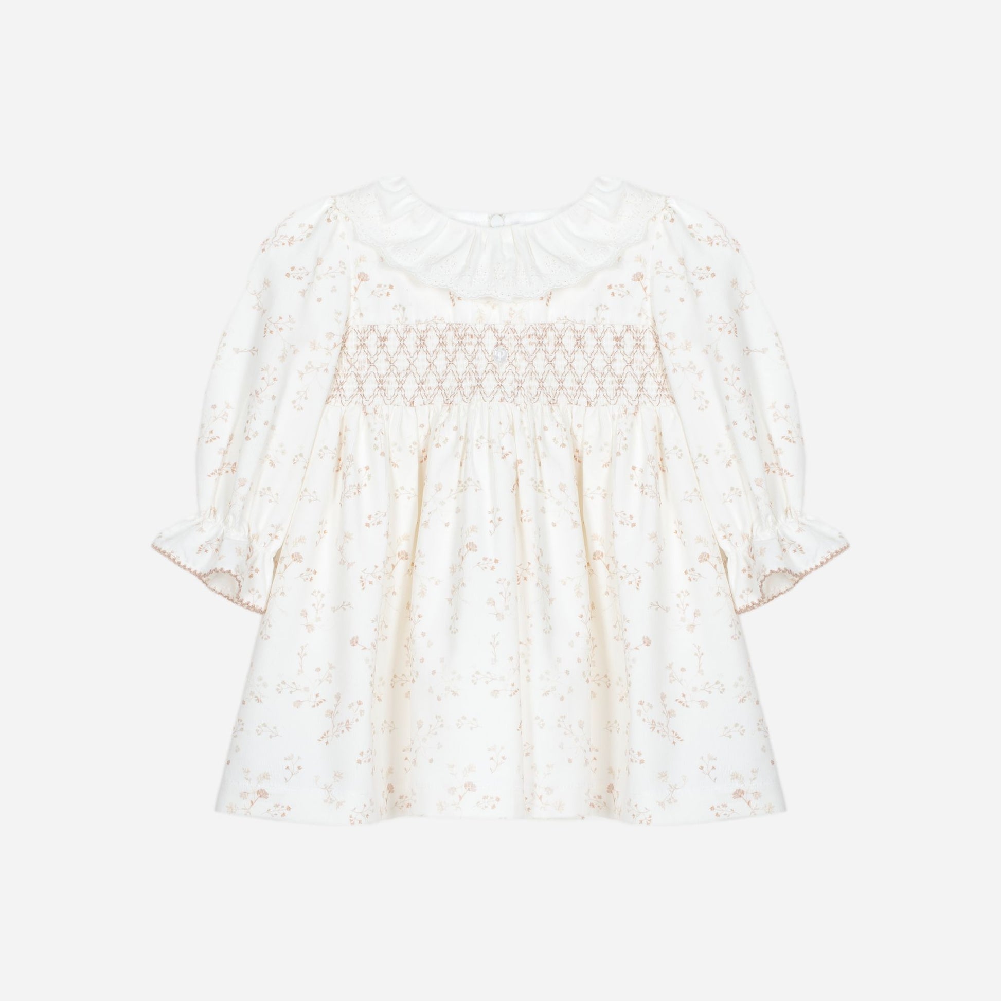 PATACHOU WHITE FLORAL RUFFLE COLLAR DRESS