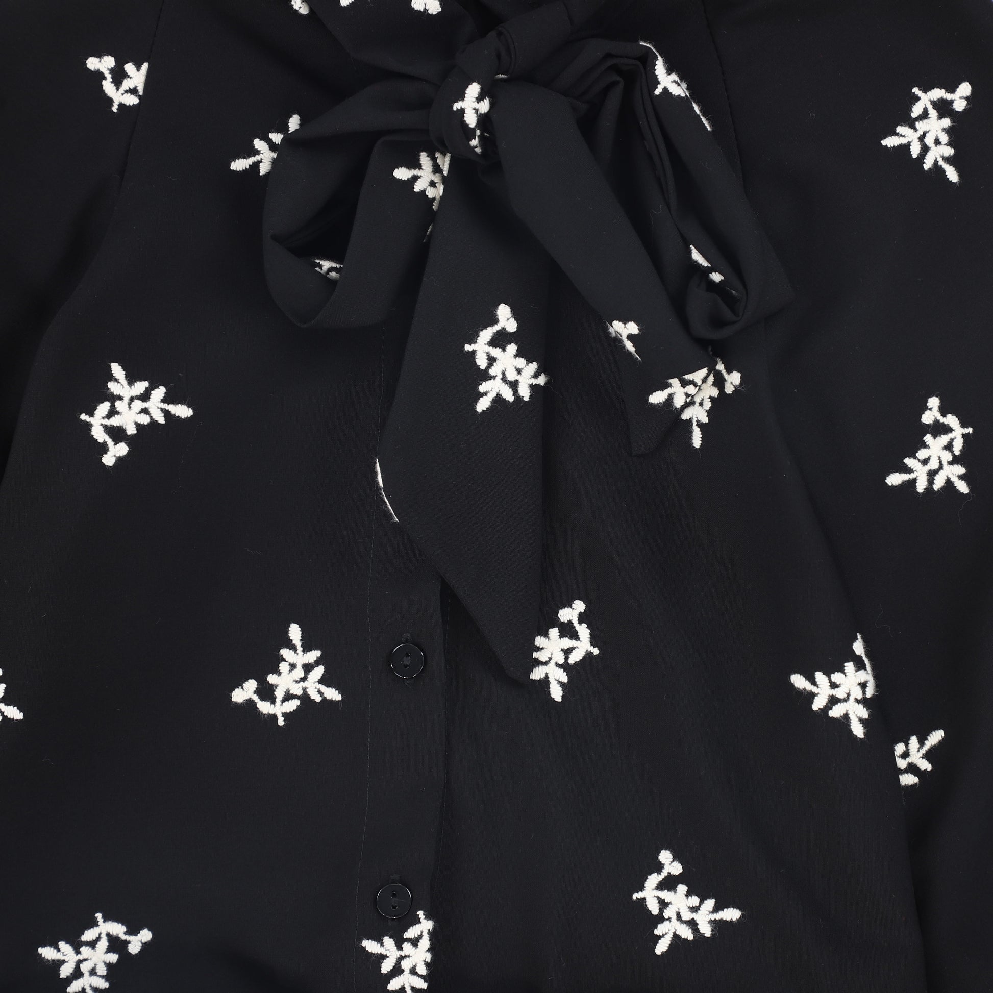 PICCOLA LUDO BLACK EMBROIDERED FLORAL TIE DRESS