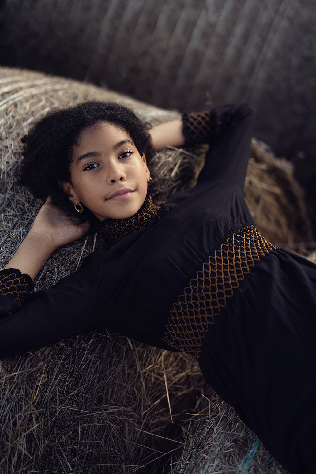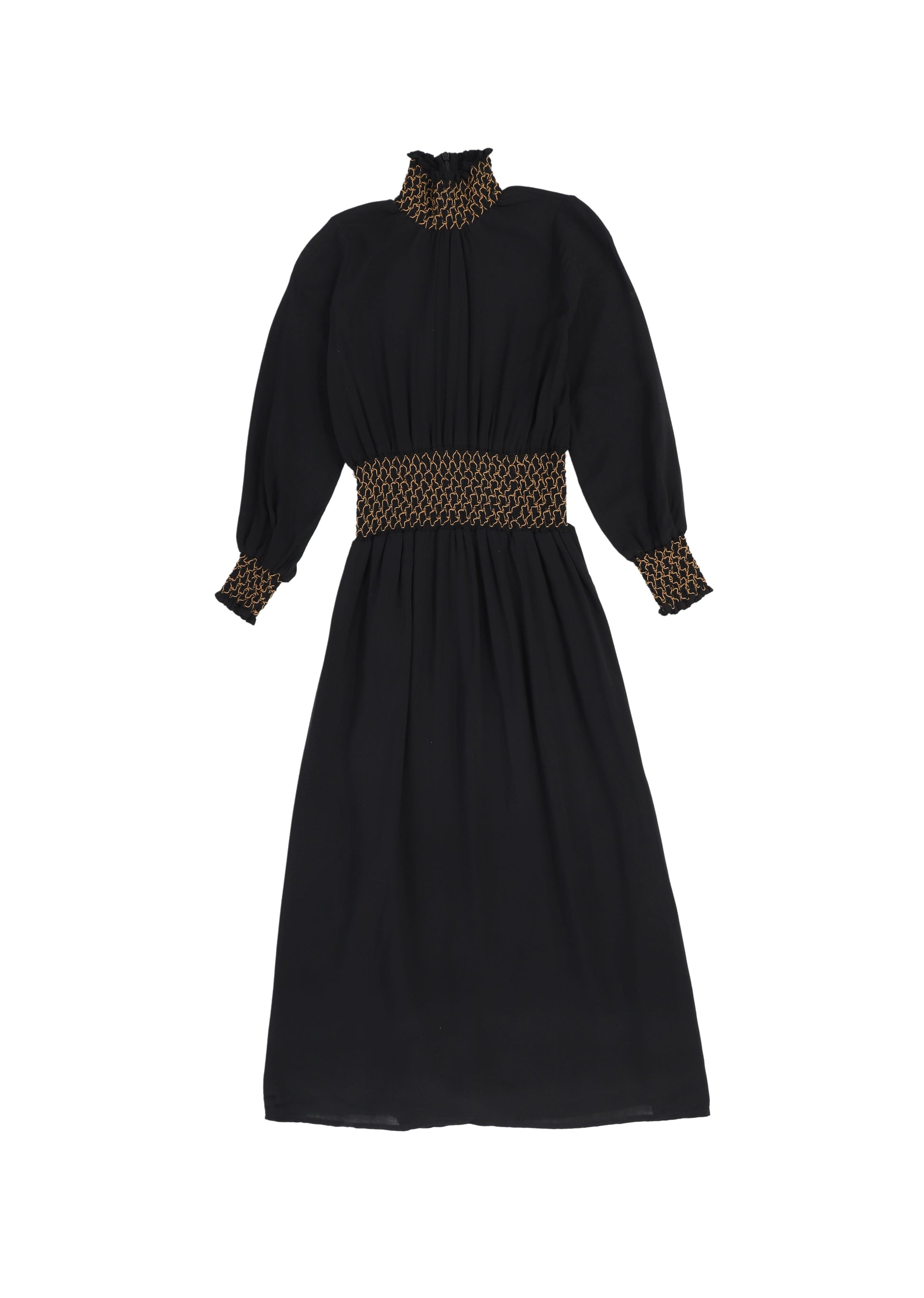 Bamboo Black Contrast Stitching Smocked Maxi Dress