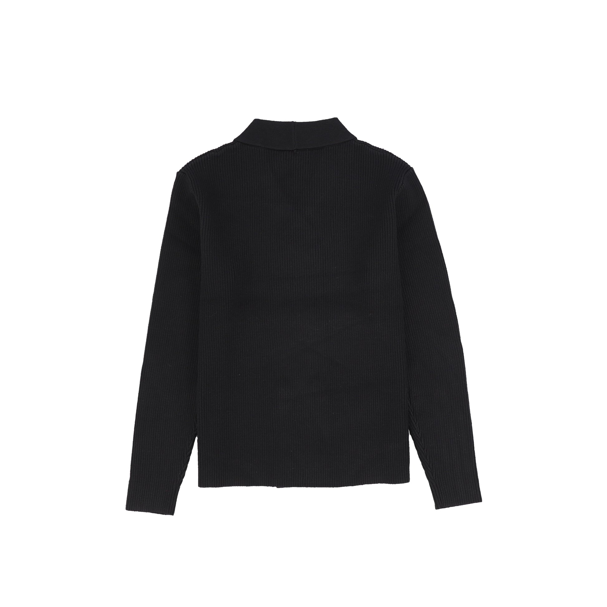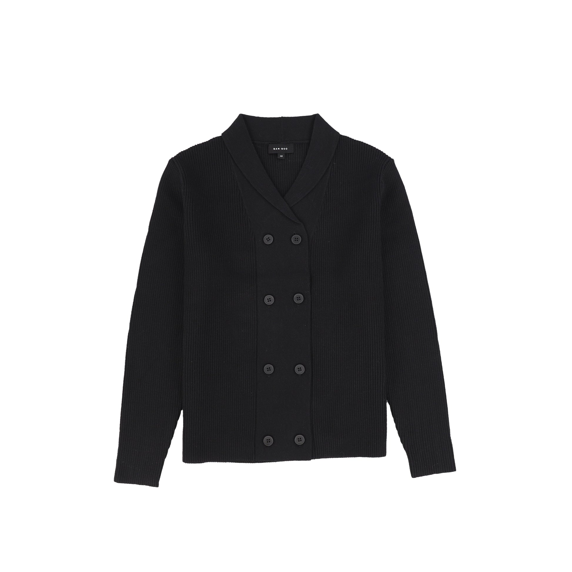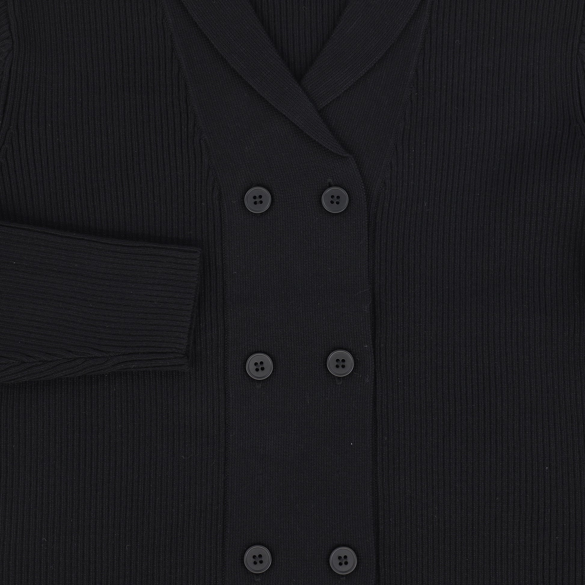 Bamboo Black Ribbed Knit Double Breasted Blazer