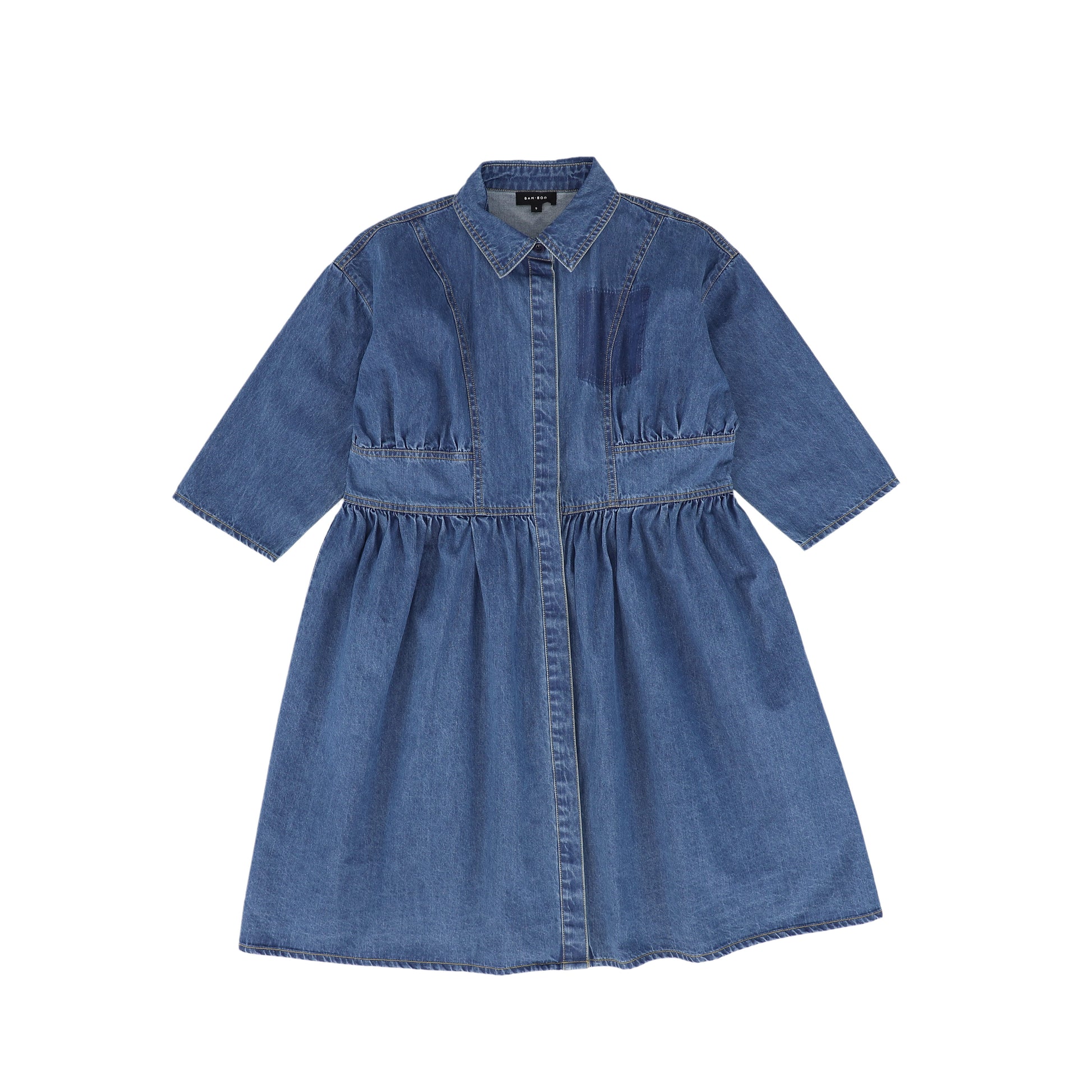 BAMBOO MID BLUE DENIM STICTHED SHIRT DRESS
