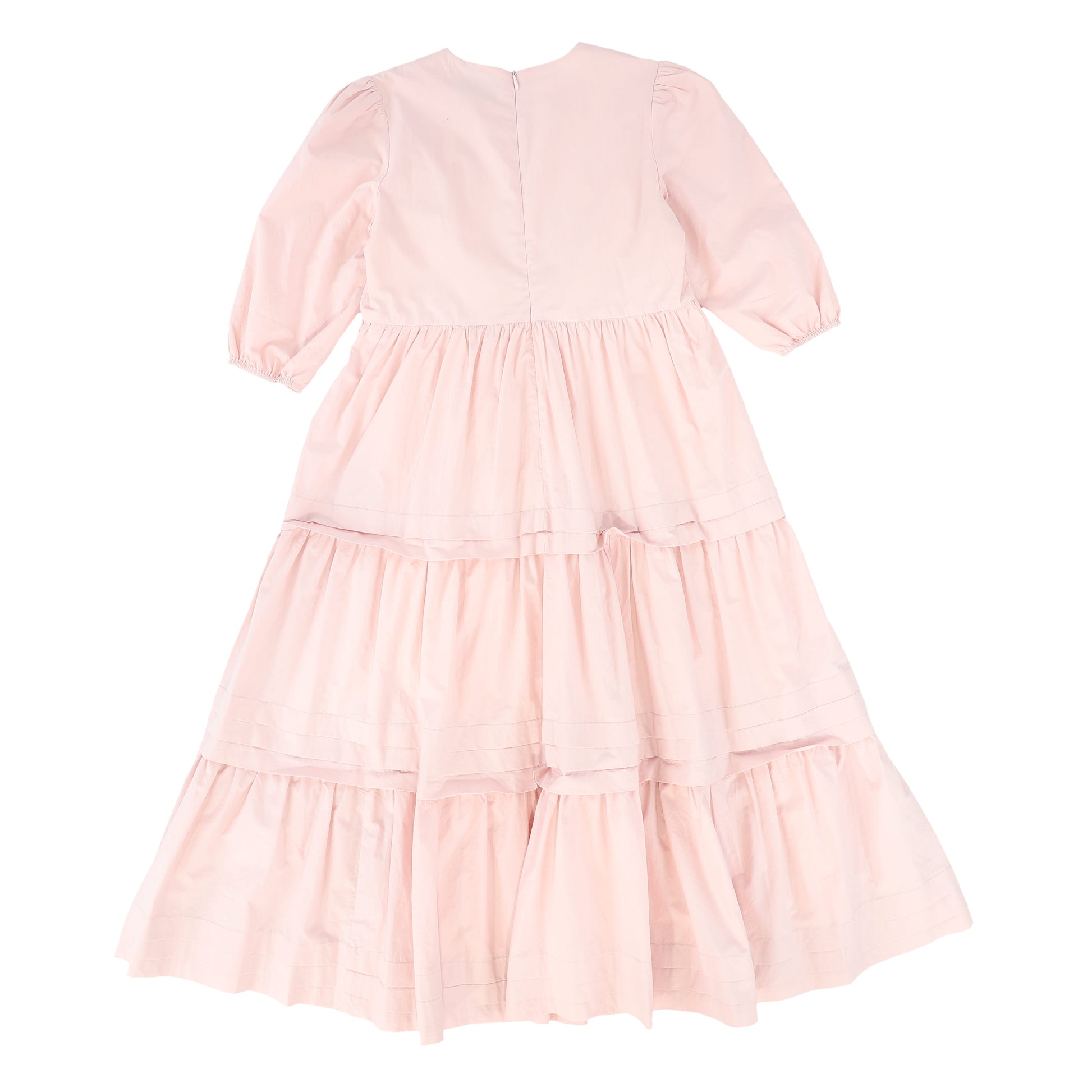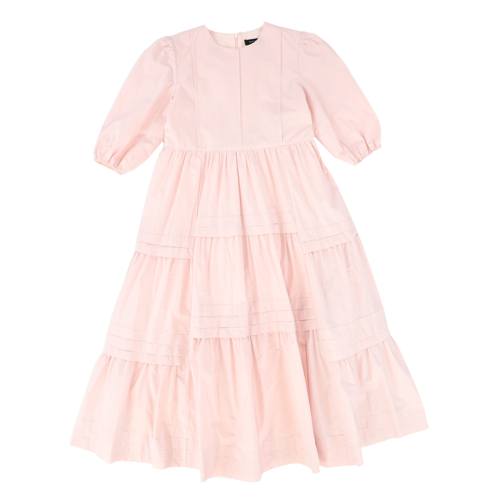 BAMBOO PINK POPLIN TIERED PLEATED DRESS