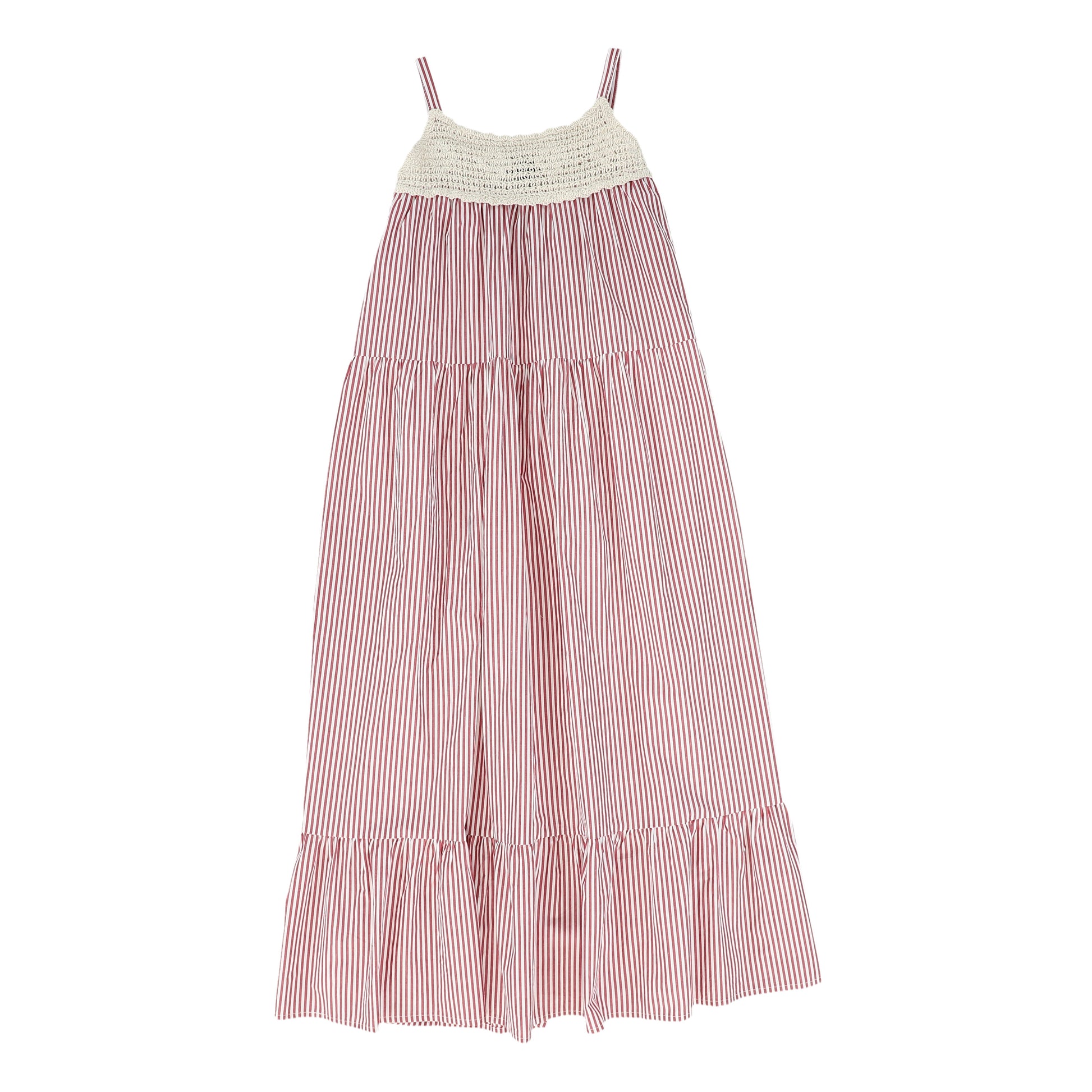 BAMBOO RED/WHITE CROCHET TIERED MAXI DRESS