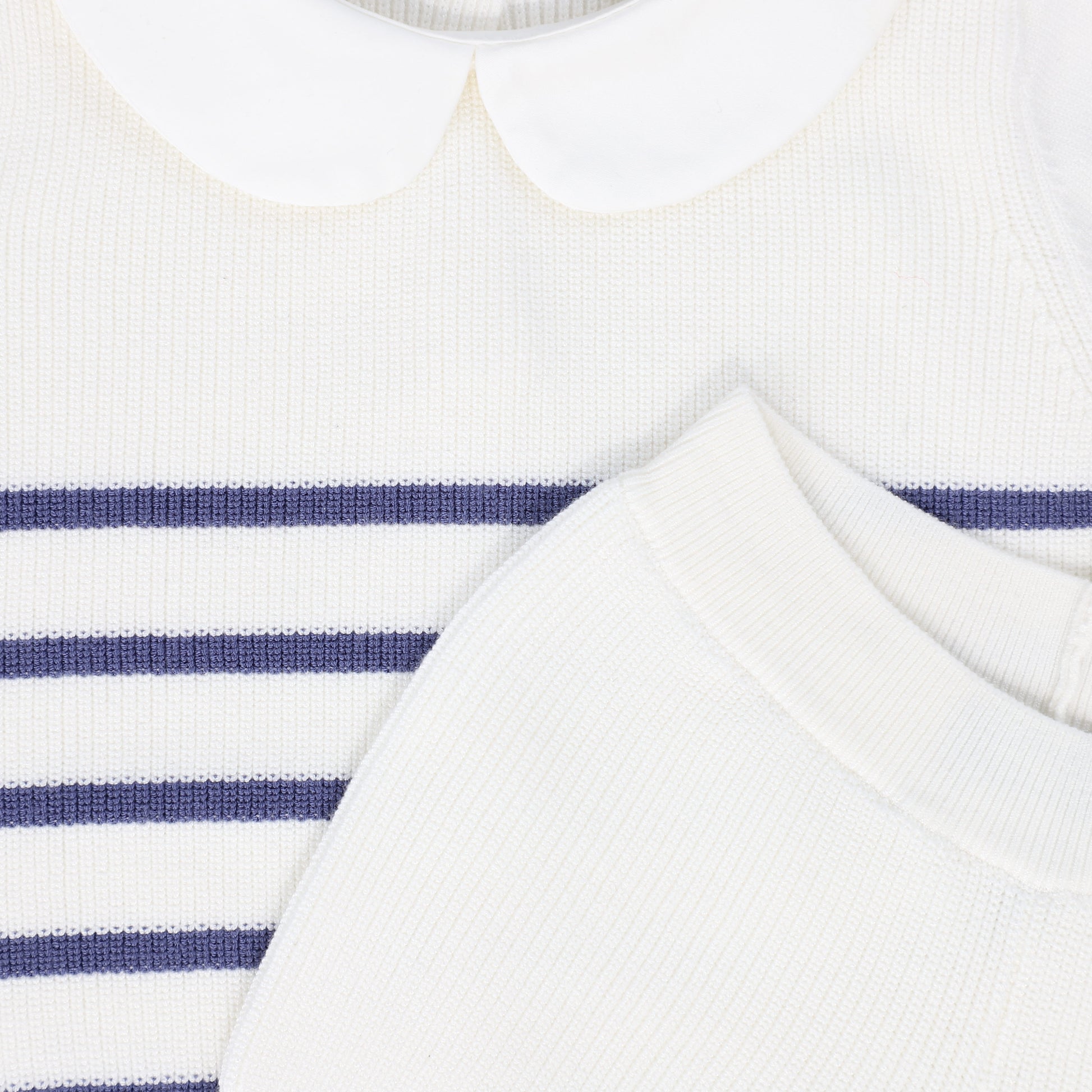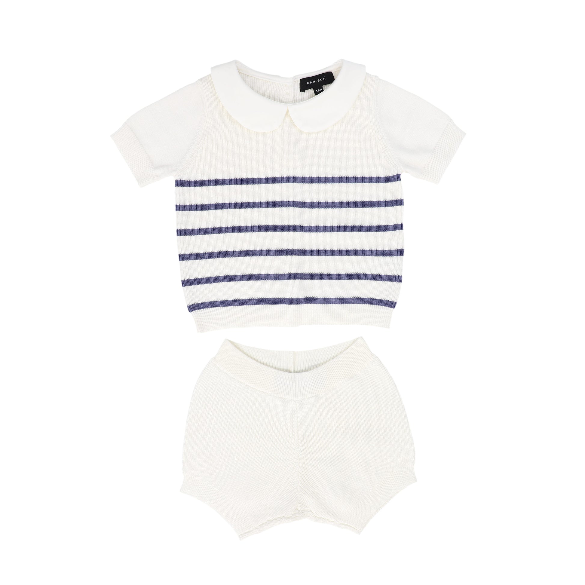 BAMBOO WHITE/BLUE KNIT COLLARED SET