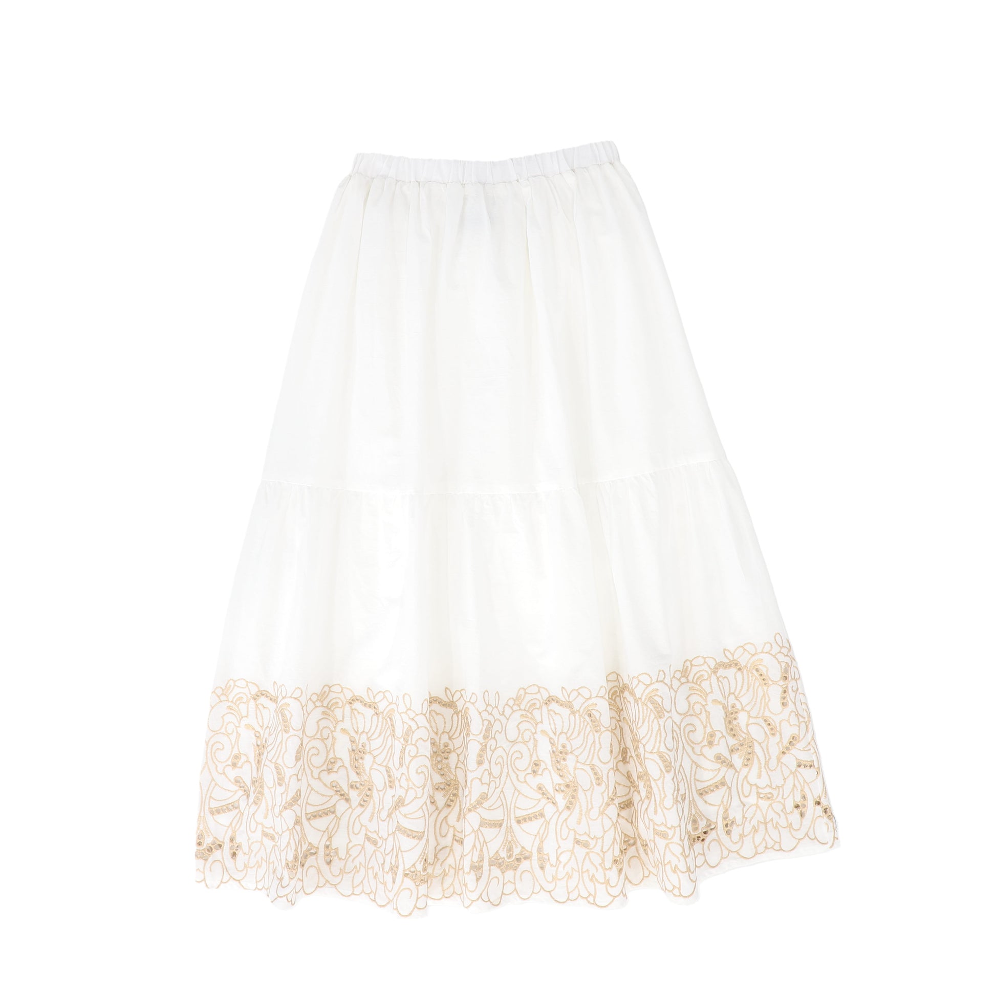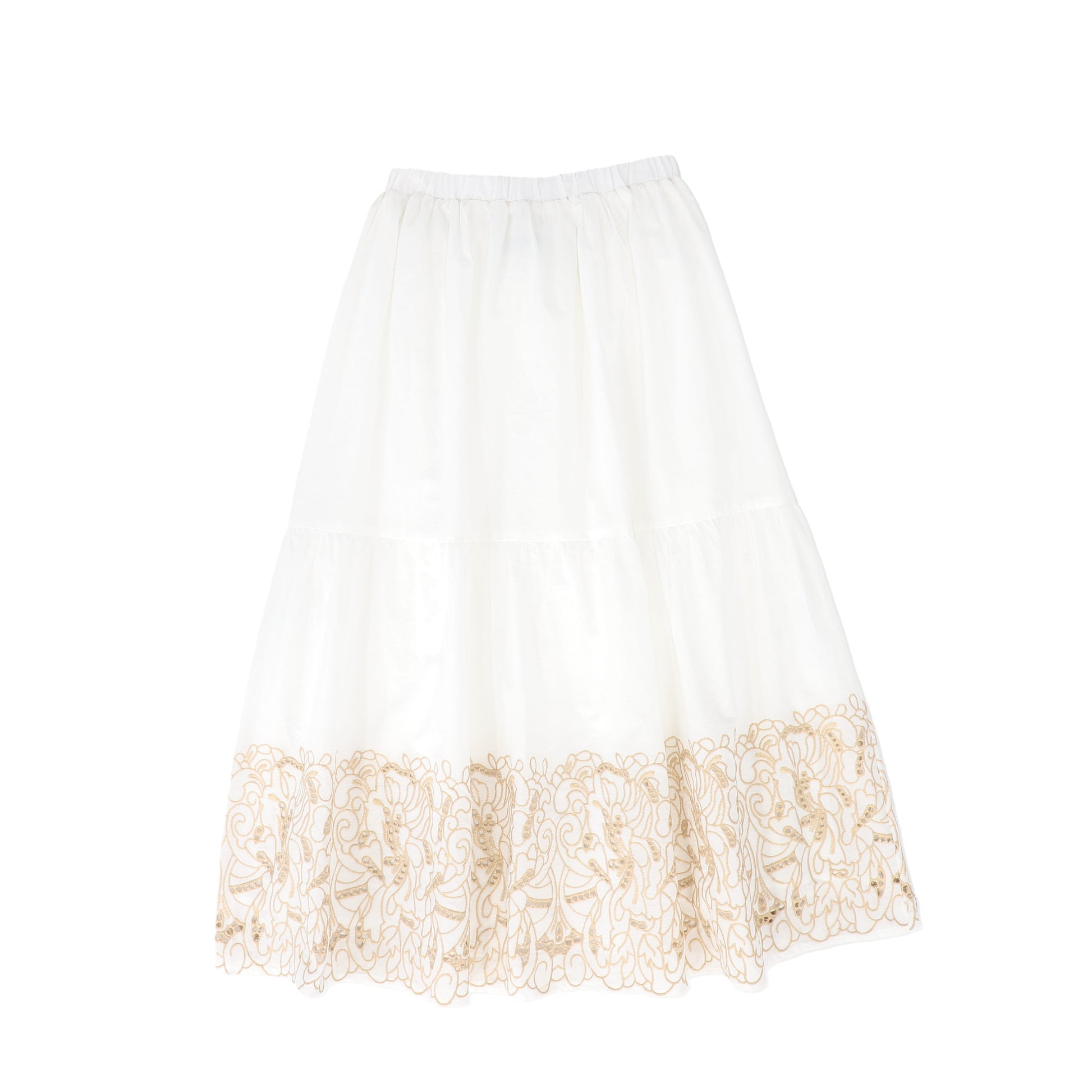 BAMBOO WHITE/TAN LACE EMBROIDERED TIERED SKIRT