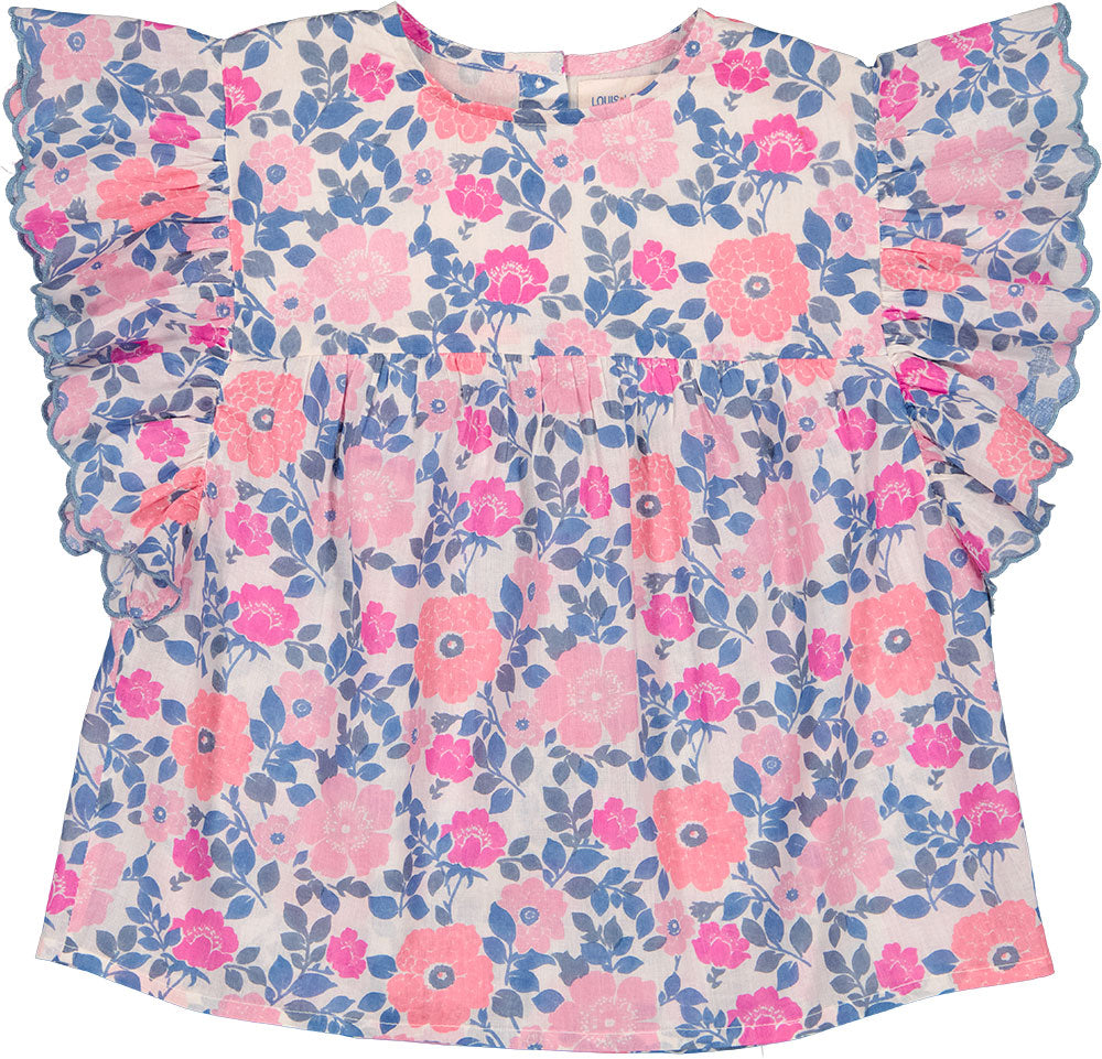 LOUIS LOUISE PINK FLORAL RUFFLE TOP