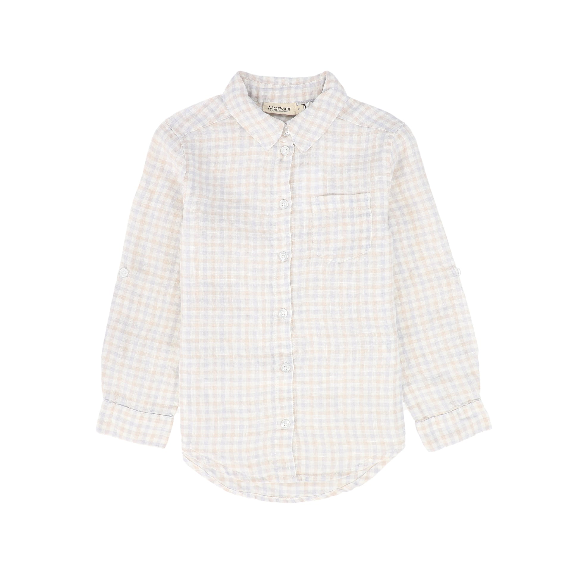 MARMAR COPENHAGEN PASTEL BROWN/BLUE CHECKED COLLAR SHIRT