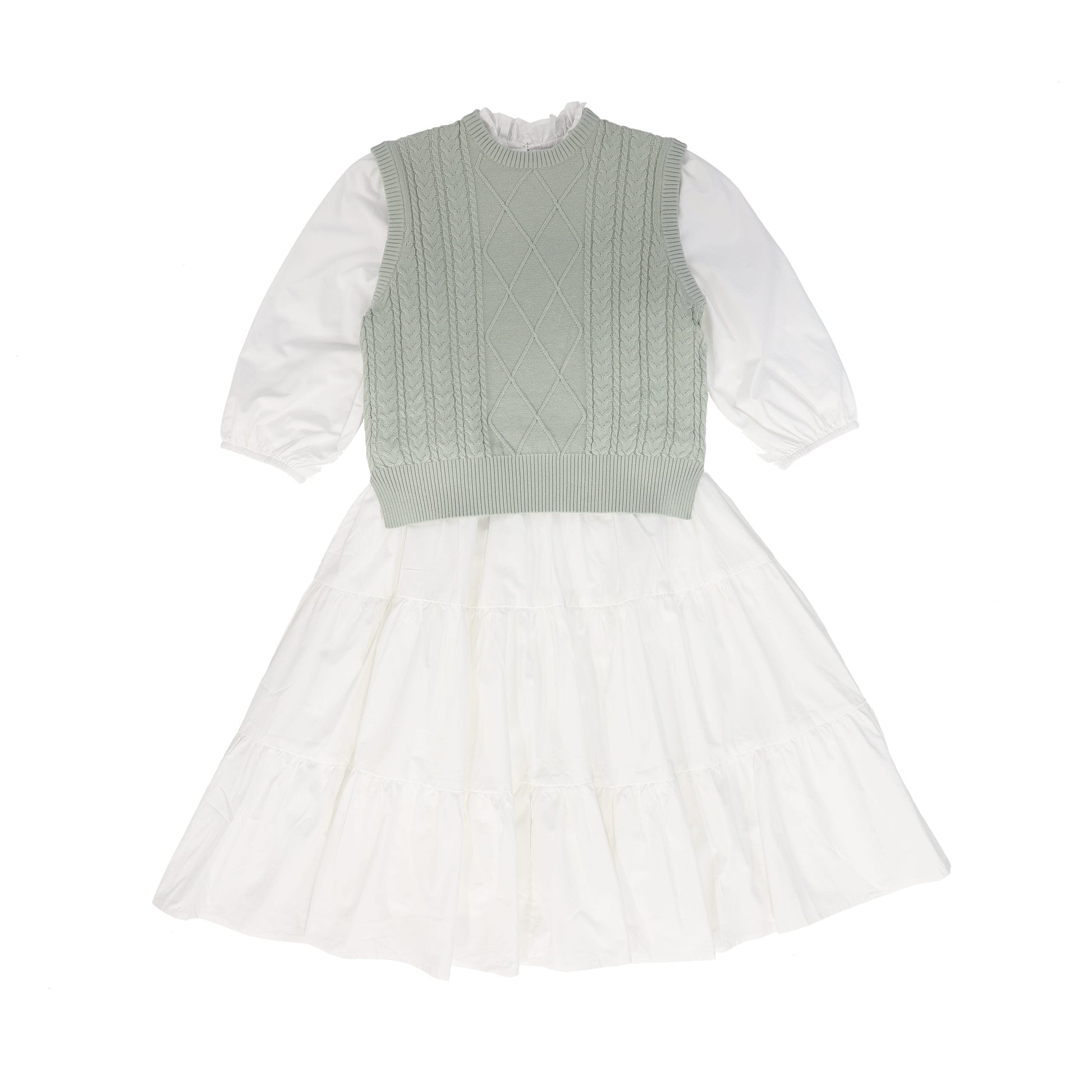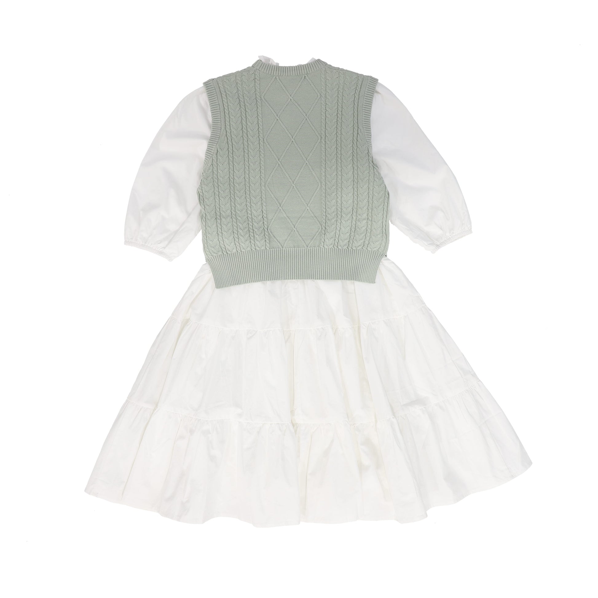 MINIMAL WHITE TIERED KNIT VEST DRESS SET