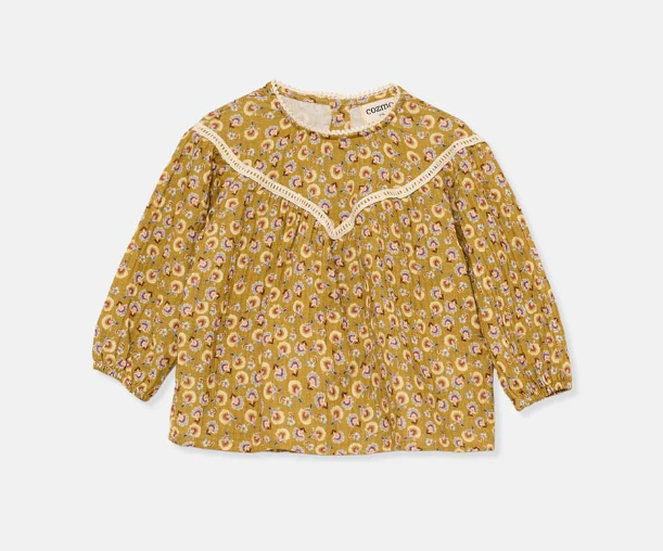 MY LITTLE COZMO MUSTARD BOHO FLORAL TOP