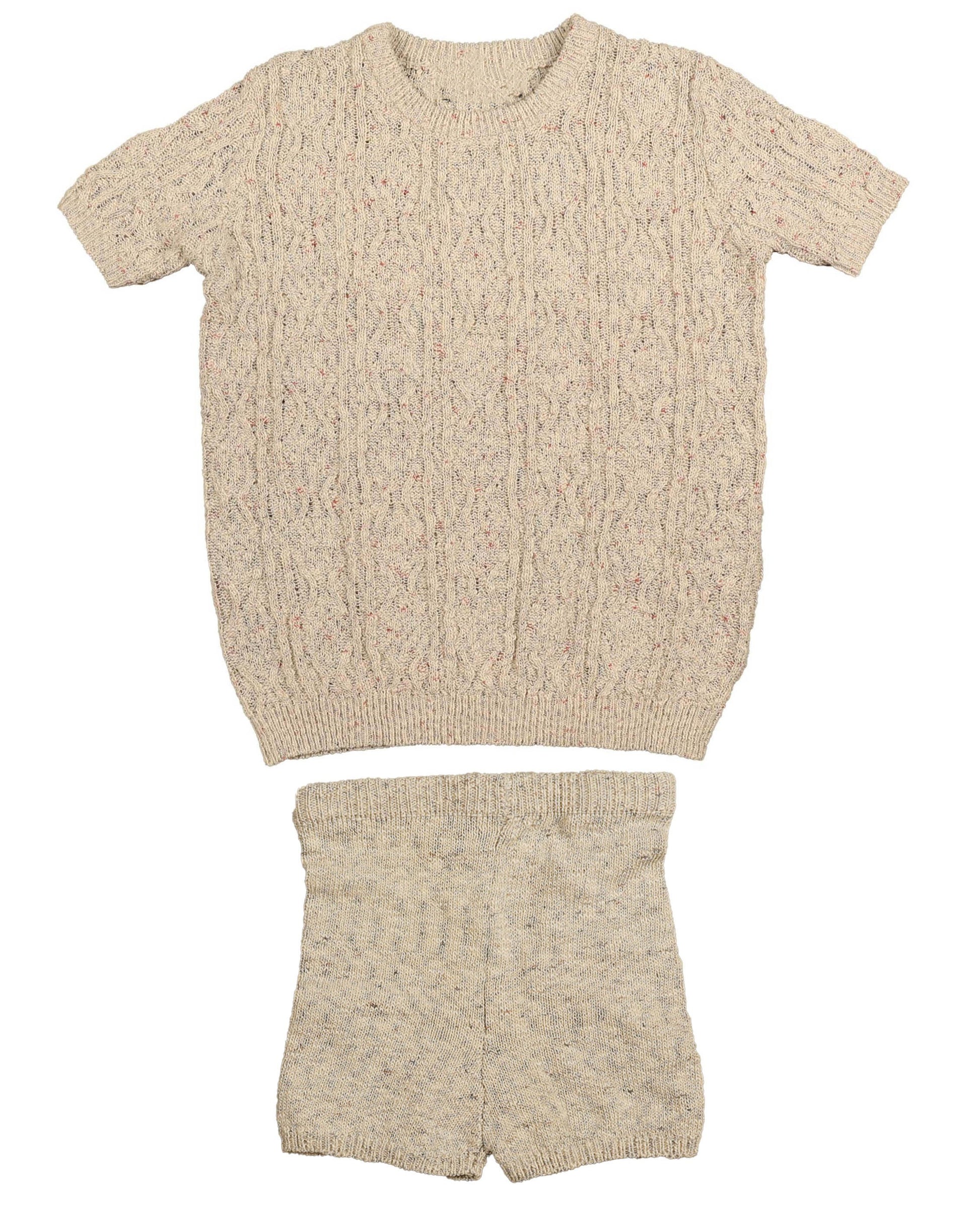 NOMA BIEGE MARLED TEXTURED KNIT SWEATER SET