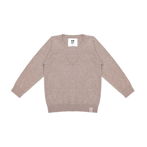 OMAMIMINI TAUPE KNIT V DETAIL SWEATER