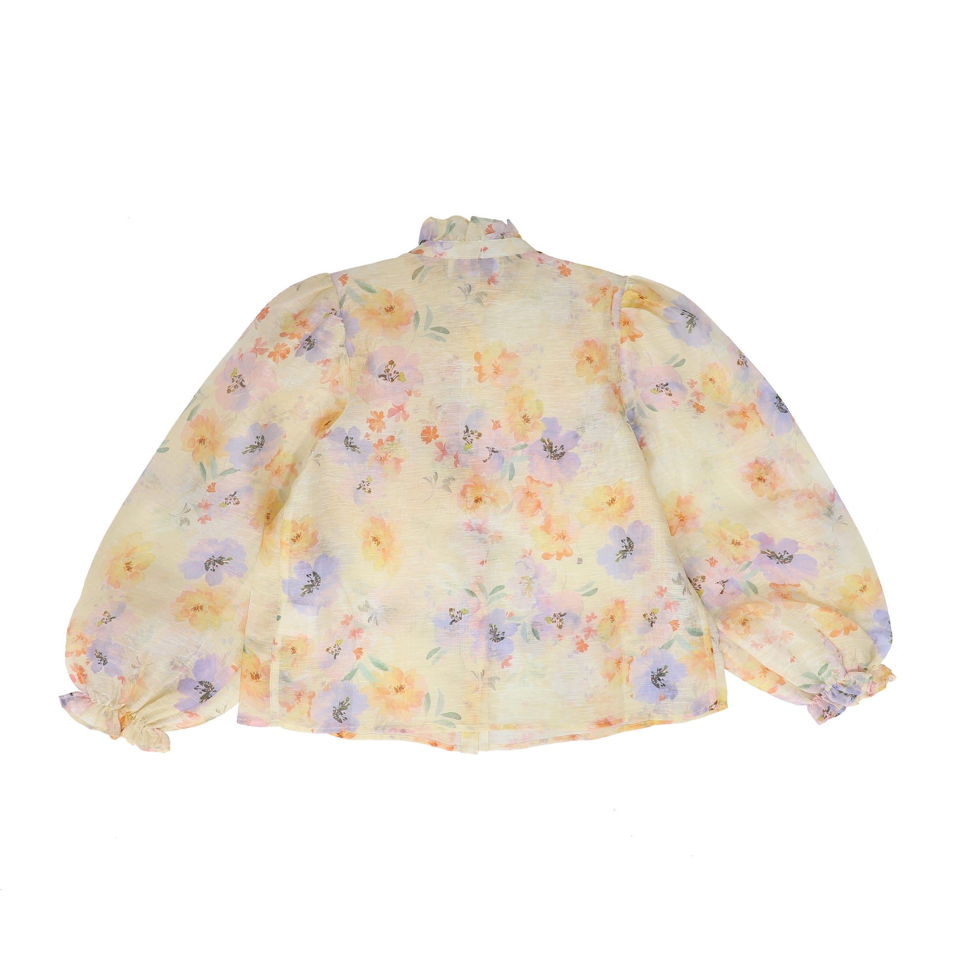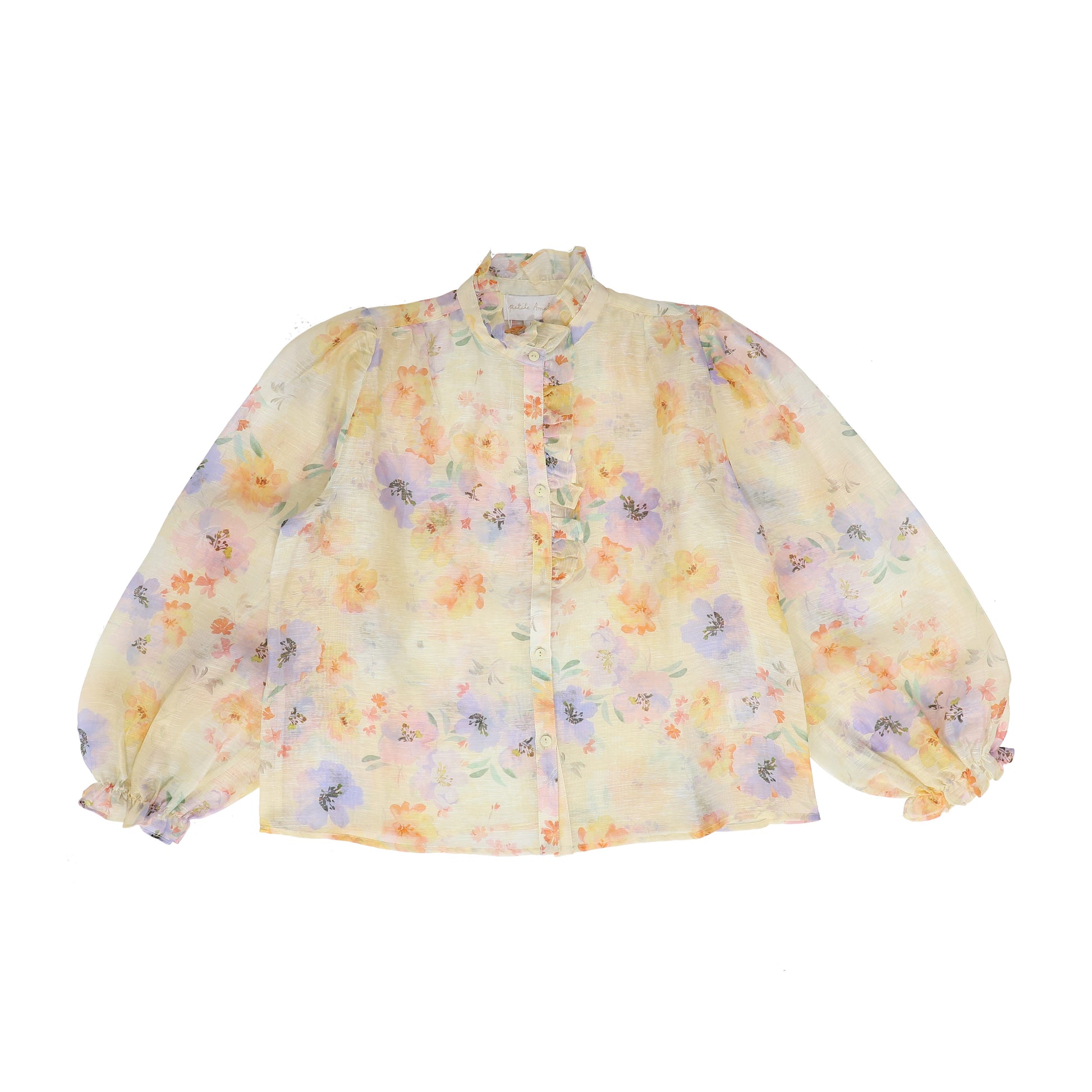 PETITE AMALIE WATER COLOR FLORAL BUTTON BLOUSE