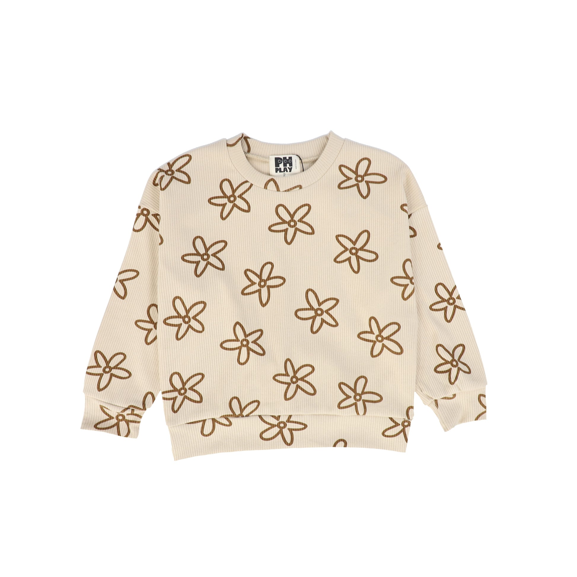 PH PLAY TAN/BROWN FLOWER PRINT RIBBED SWEATSHIRT